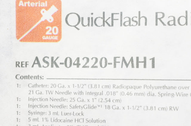 Arrow ASK-04220-FMH1 QuickFlash Radial Artery Catheterization Kit 20 Ga