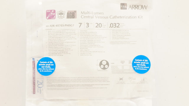 Arrow ASK-45703-PMSG1 Multi-Lumen Central Venous Catheterization Kit 3Lumen  7Fr x 20cm x .032inch