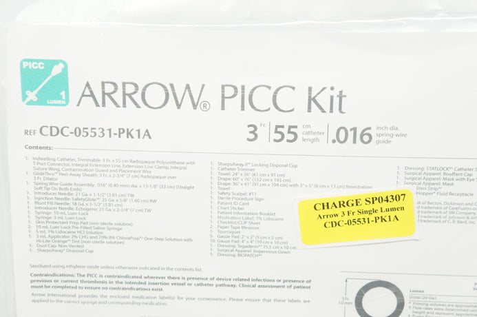 - Arrow CDC-05531-PK1A PICC Kit 3Fr x 55cm x 0.16inch (x)