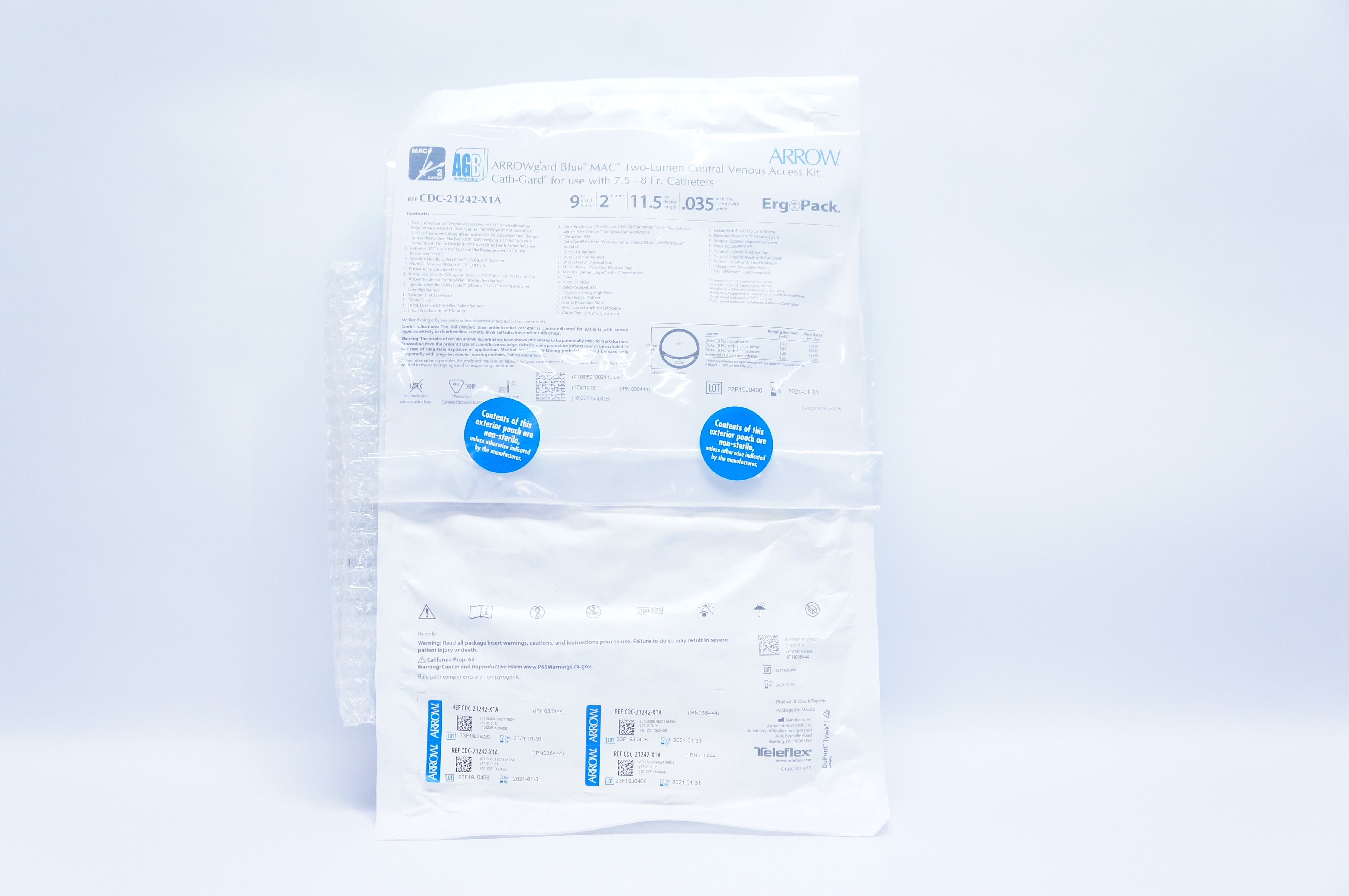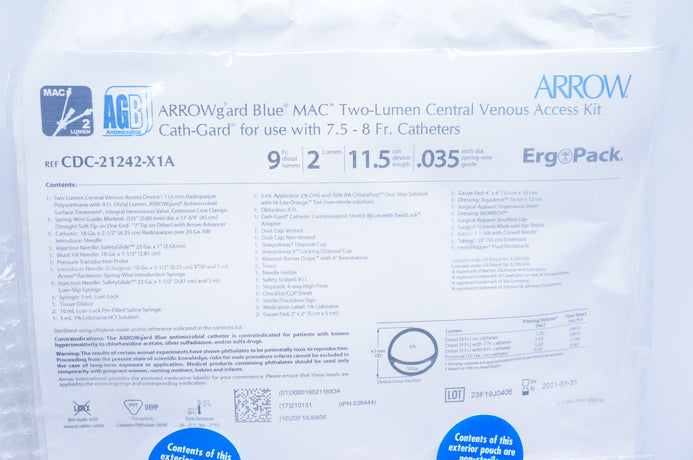 Arrow CDC-21242-X1A Two-Lumen Central Venous Access Kit 9Fr. 11.5cm, 2 Lumen