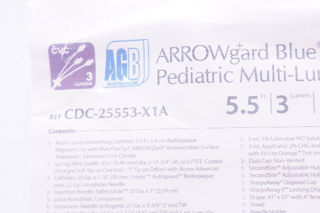 - Arrow CDC-25553-X1A Blue Pediatric Multi-Lumen CVC Kit 5.5Fr 3 Lumen 8cm (x)