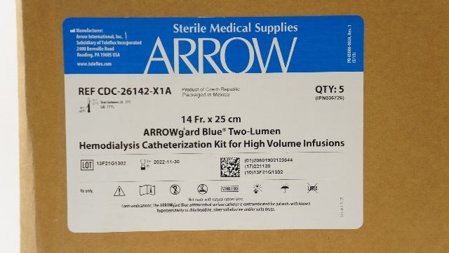 - Arrow CDC-26142-X1A Hemodialysis Catheterization Kit 14Fr x 25cm (x) - Case of 5