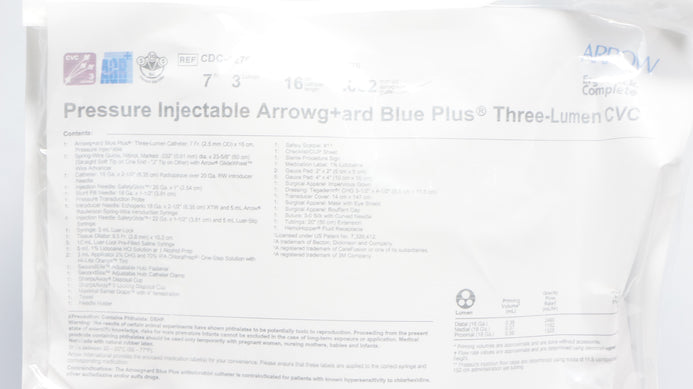 - Arrow CDC-42703-XPCN1A Pressure Injectable Three-Lumen CVC 7Fr x 0.032in (x)