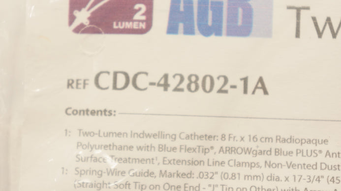 Arrow CDC-42802-1A Two-Lumen CVC Kit 8Fr x 0.032inch