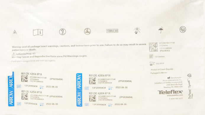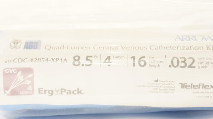 Arrow CDC-42854-XP1A Quad-Lumen Central Venous Catheterization Kit 8.5 Fr x 16cm x .032inch, 4 Lumen