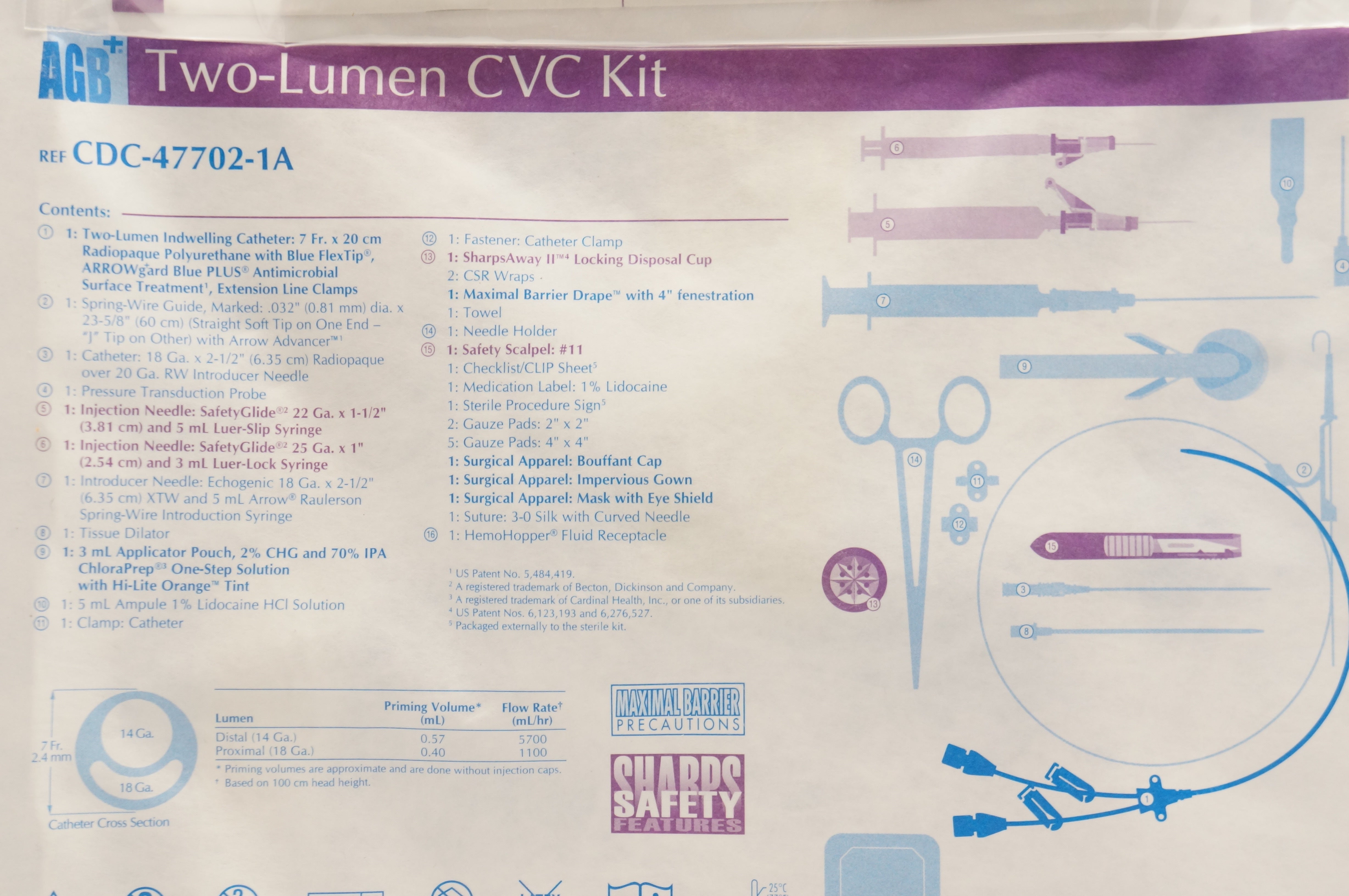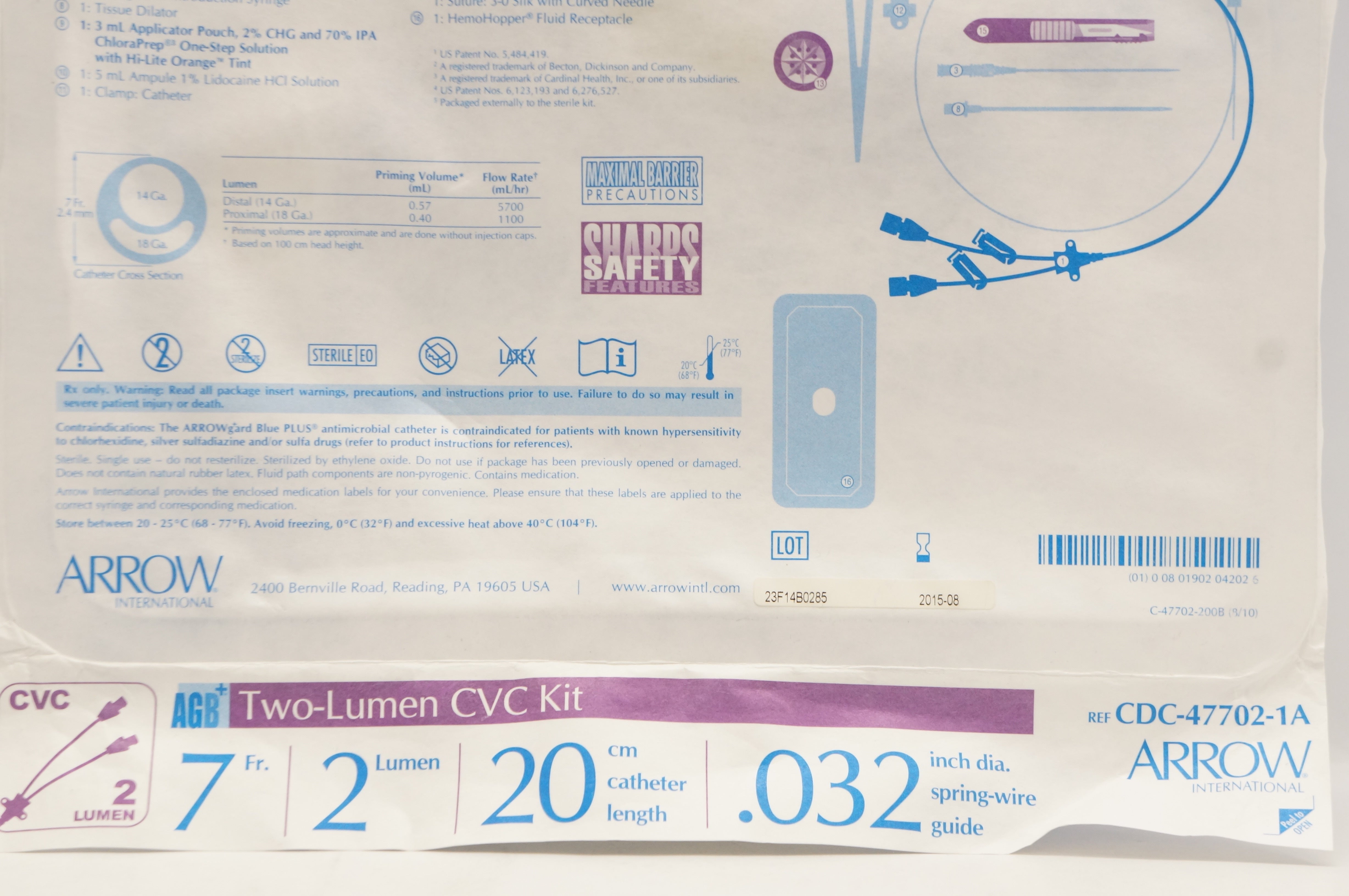 Arrow CDC-47702-1A Blue Two-Lumen CVC Kit 7Fr. x 20cm (x)
