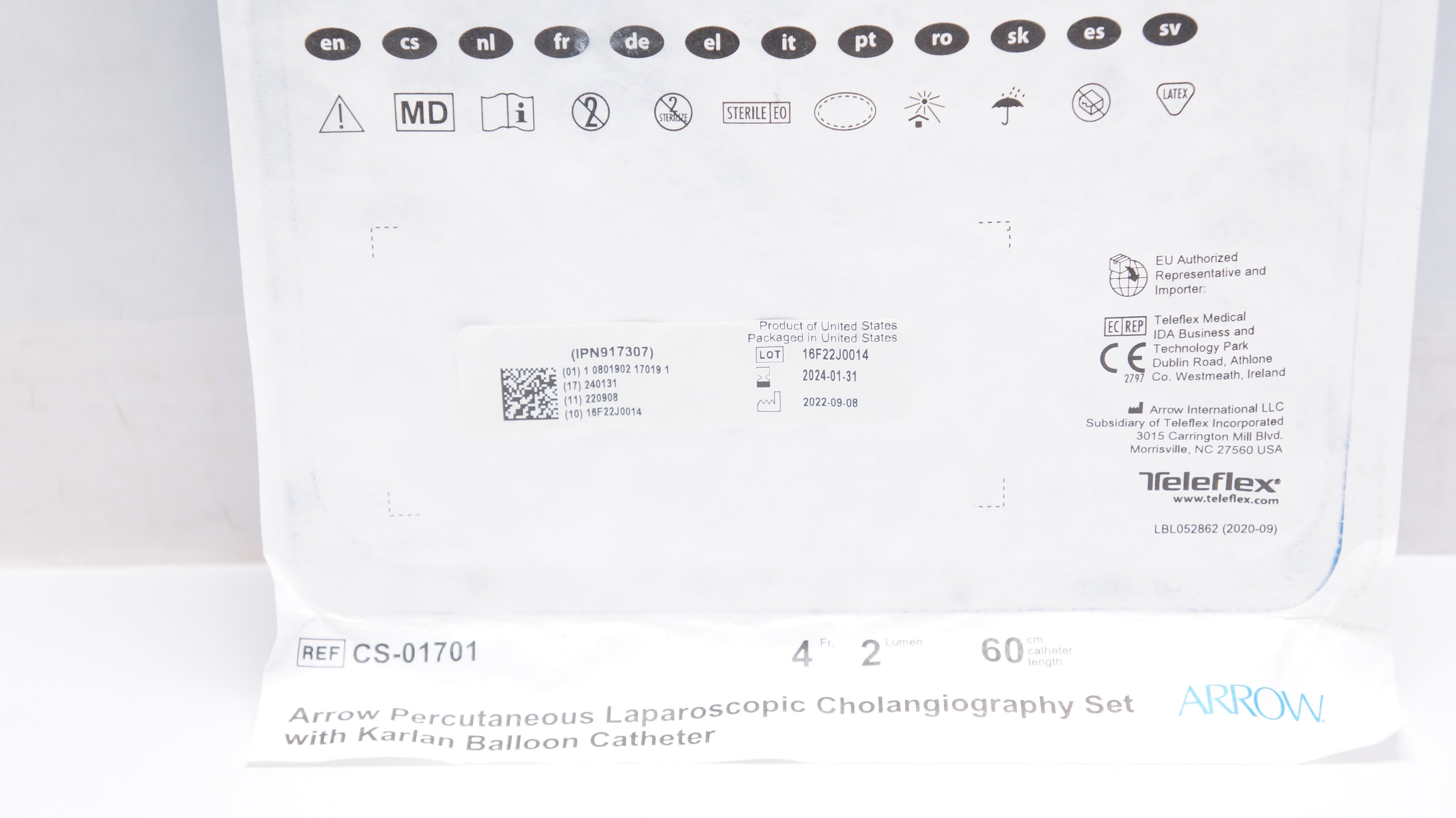 Arrow CS-01701 Percutaneous Laparoscopic Cholangiography Set with Karlan Balloon Catheter 2Lumen 4Fr x 60cm