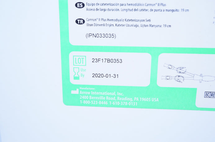 Arrow CS-15242-VSP Cannon II Plus Hemodialysis Catheterization Set Long-Term Access, Catheter Length, Tip to Cuff 19cm