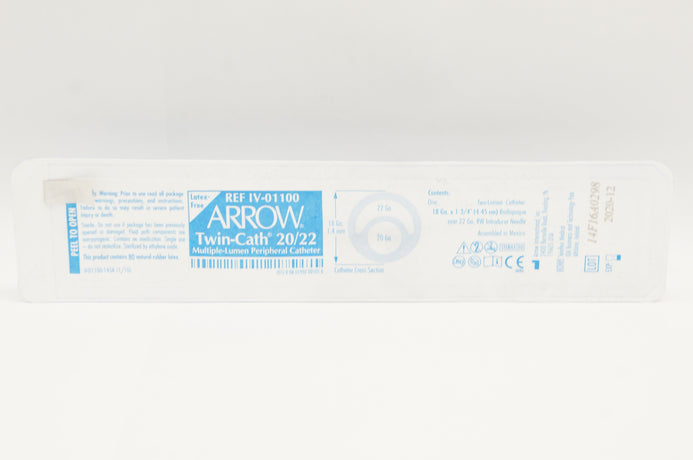 Arrow IV-01100 Twin-Cath 20/22 Multiple-Lumen Peripheral Cath. 18Gax1 3/4inch(x)