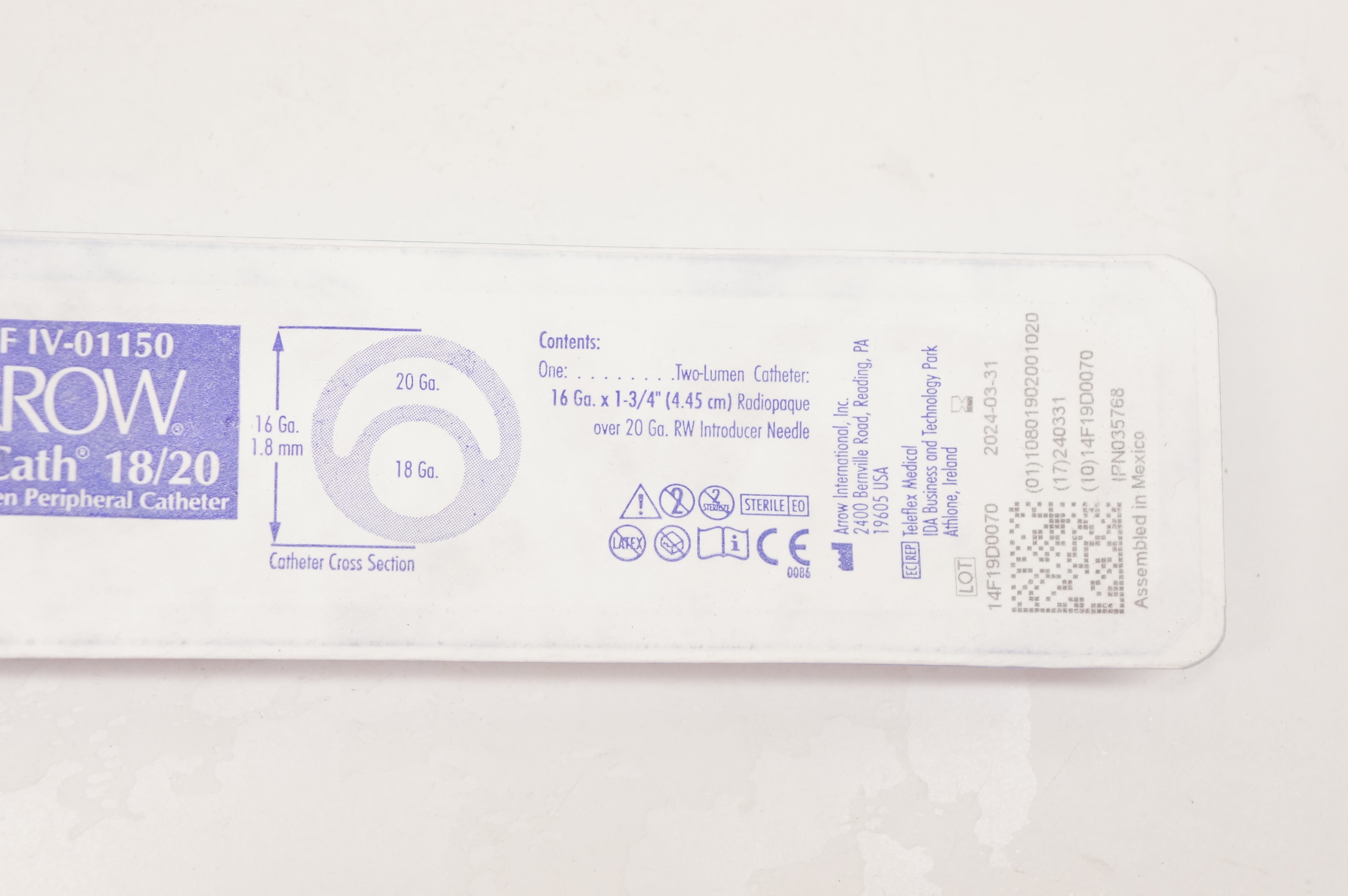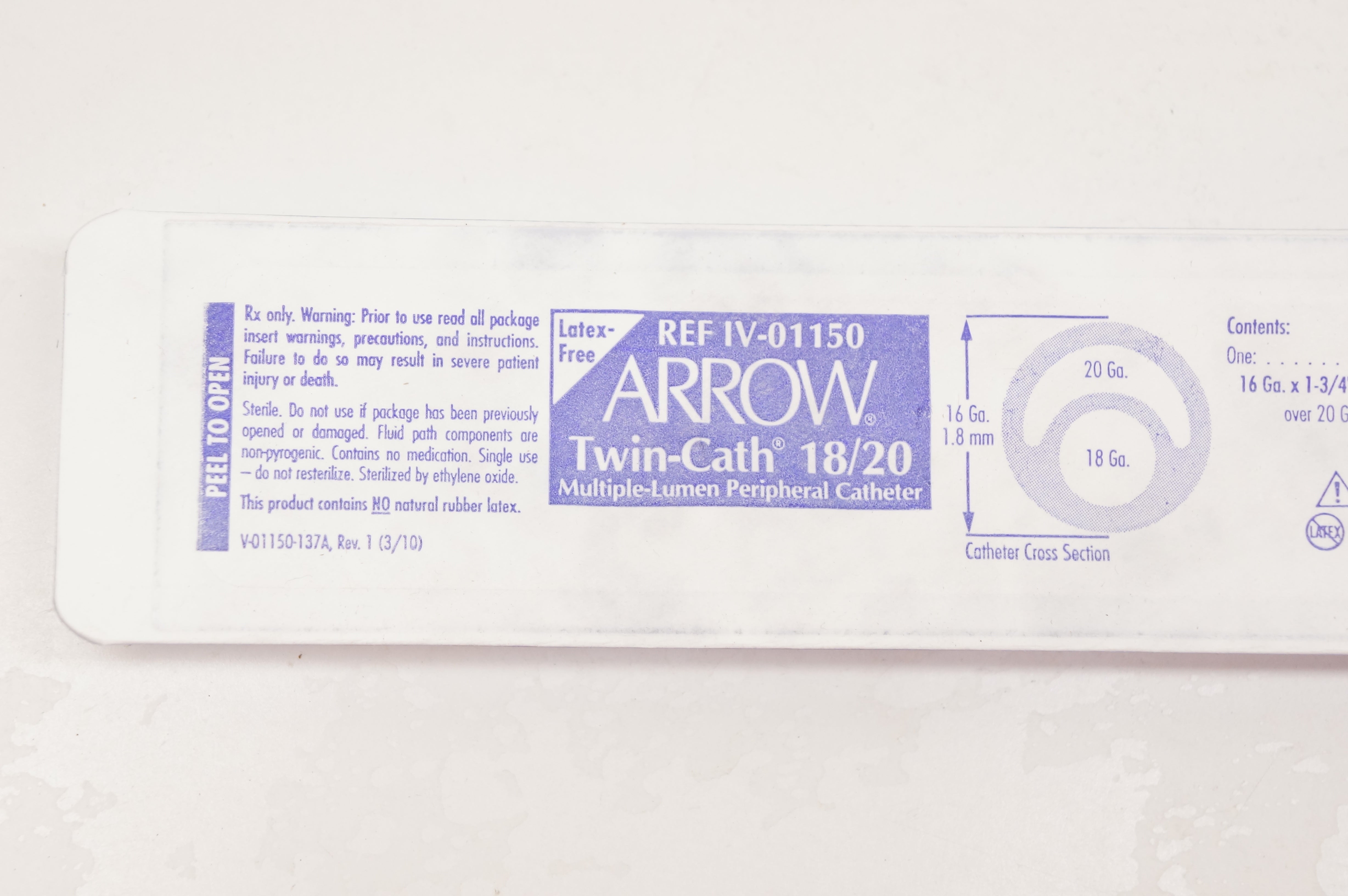 Arrow IV-01150 Twin-Cath 18/20 Multiple-Lumen Peripheral Cath. 16Ga. x1-3/4inch