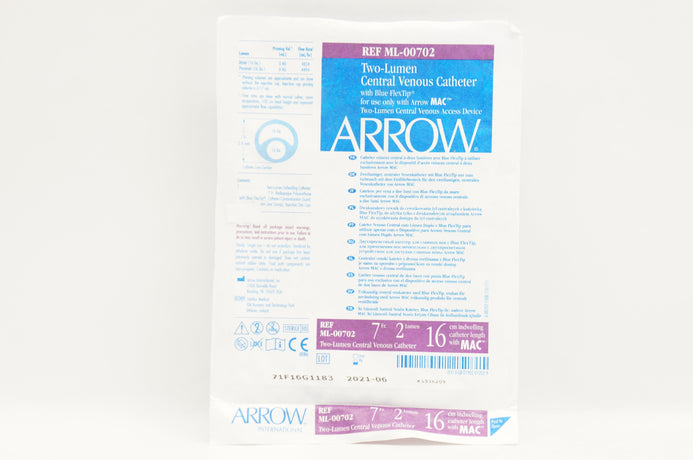 Arrow ML-00702 Two-Lumen Central Venous Catheter 7Fr x 2Lumen x 16cm