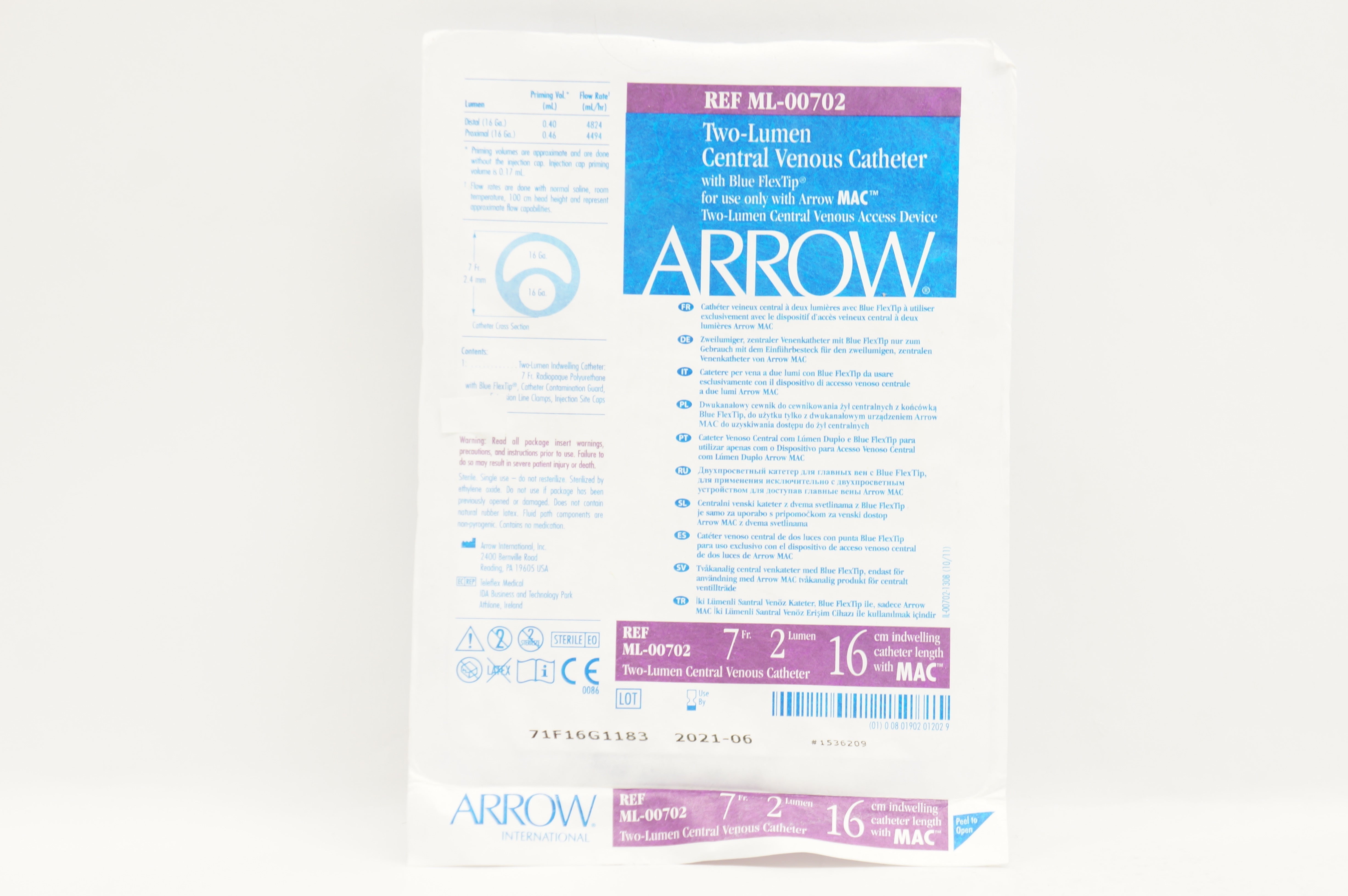 Arrow ML-00702 Two-Lumen Central Venous Cath. 7Fr x 2Lumen x 16cm (x)