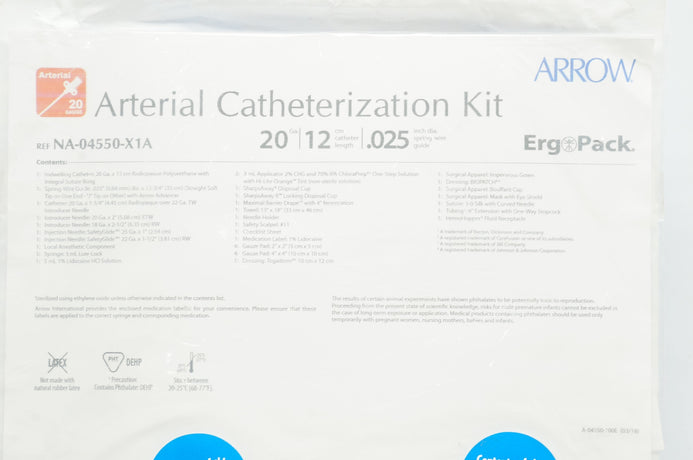 Arrow NA-04550-X1A Arterial Catheterization Kit 20Ga x 12cm x .025inch (x)