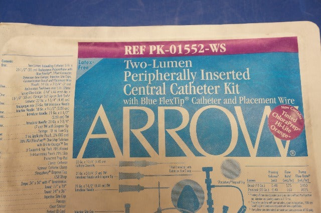 - Arrow PK-01552-WS Preipherally Inserted Central Cath Kit 5Fr., 2 Lumen, 55cm (x)