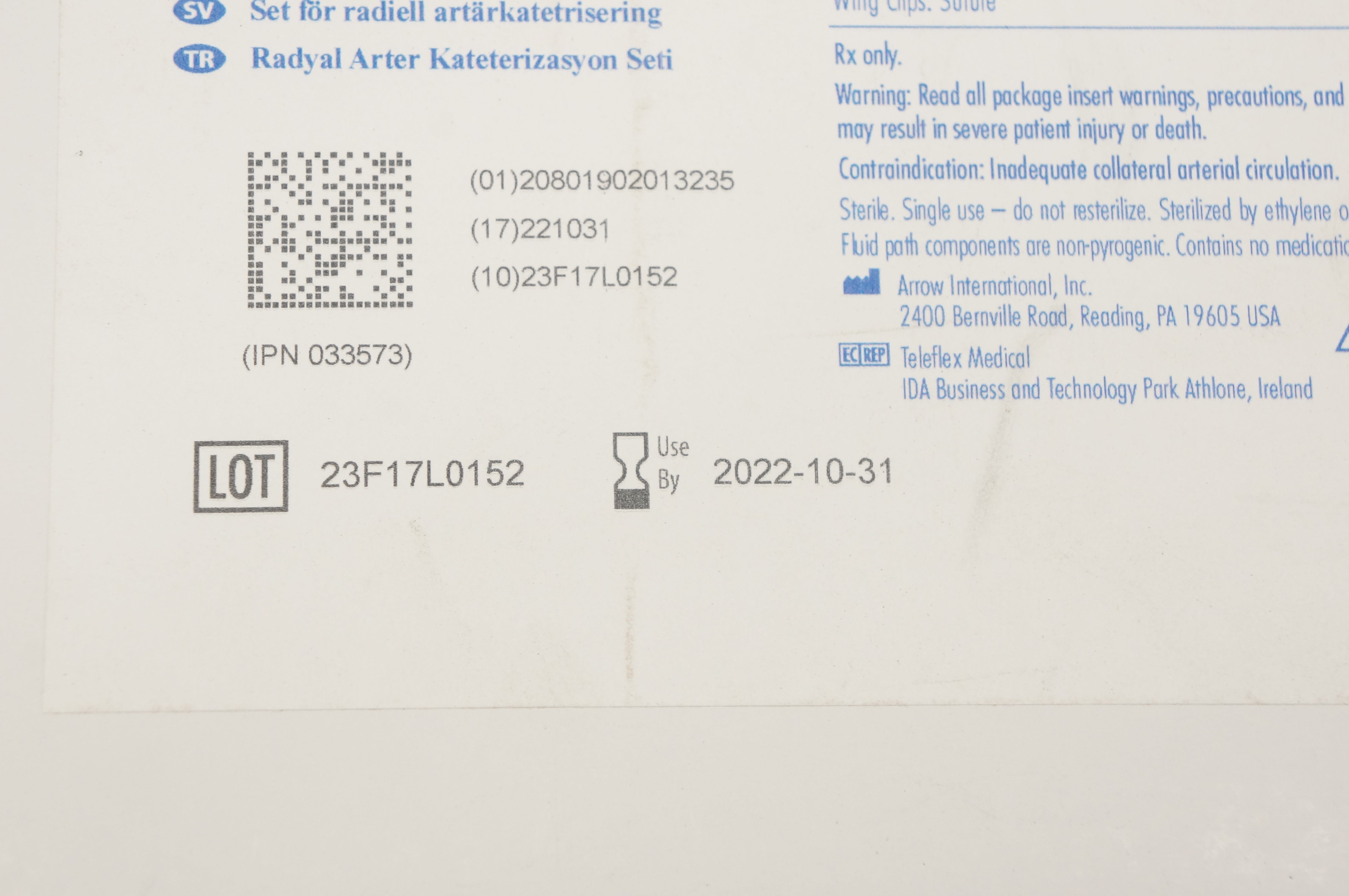 Arrow RA-04022 Radial Artery Catheterization Set 0.018in. x 5-3/8in.