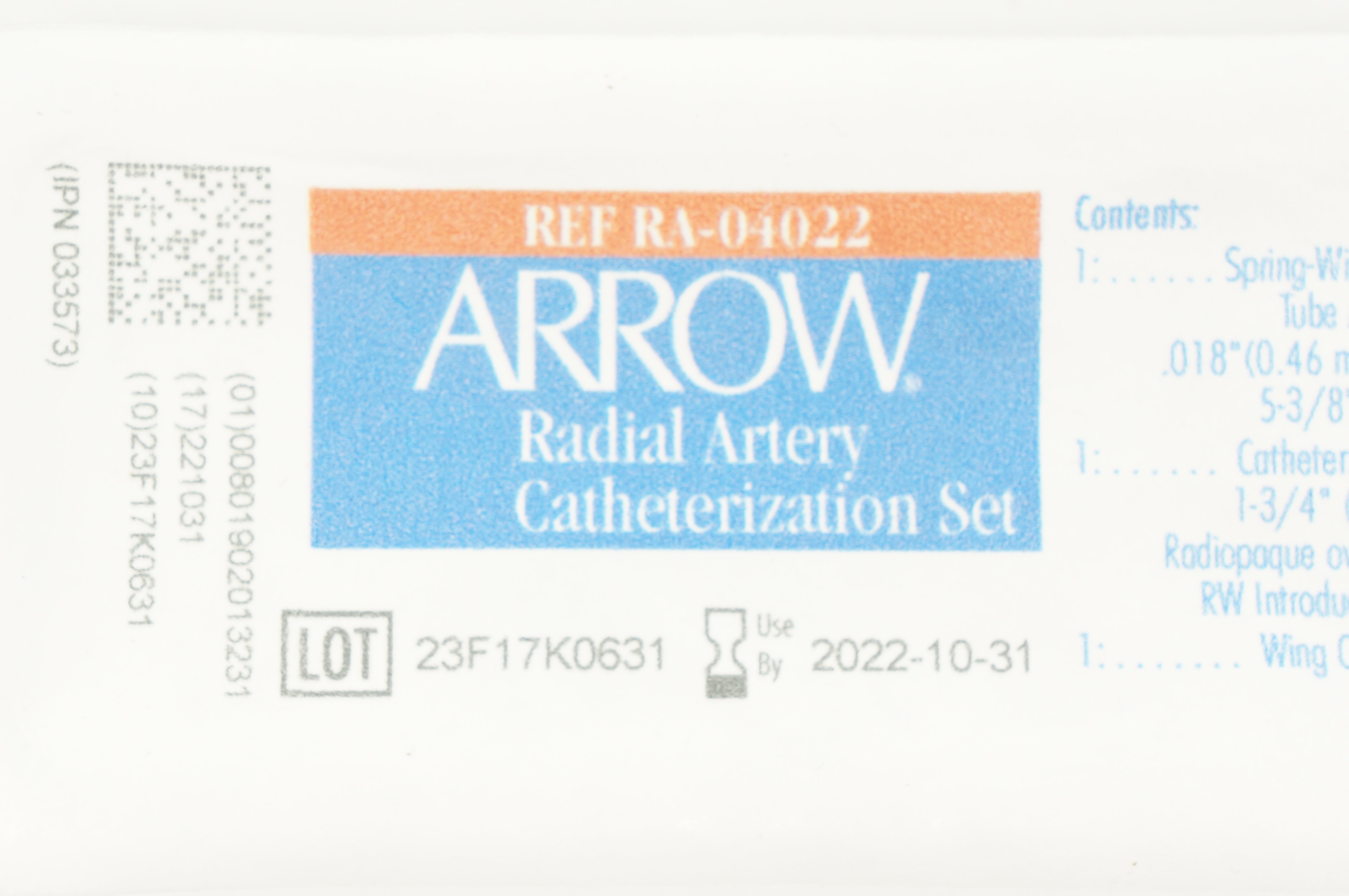 - Arrow RA-04022 Radial Artery Catheterization Set 0.018in. x 5-3/8in. (x)