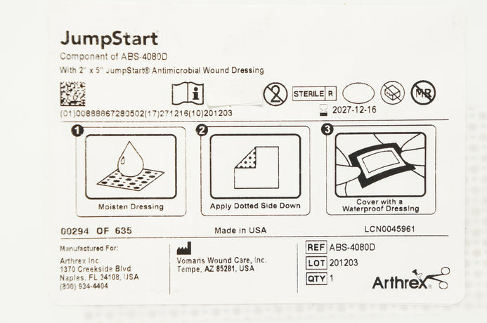 Arthrex ABS-4080D JumpStart Antimicrobial Wound Dressing 2inch x 5inch