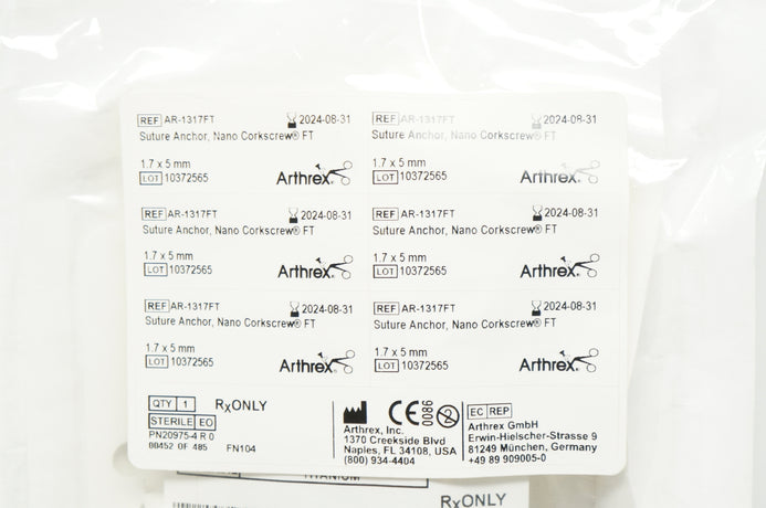 - Arthrex AR-1317FT Stre Anchor, Nano Corkscrew FT 1.7mm x 5mm