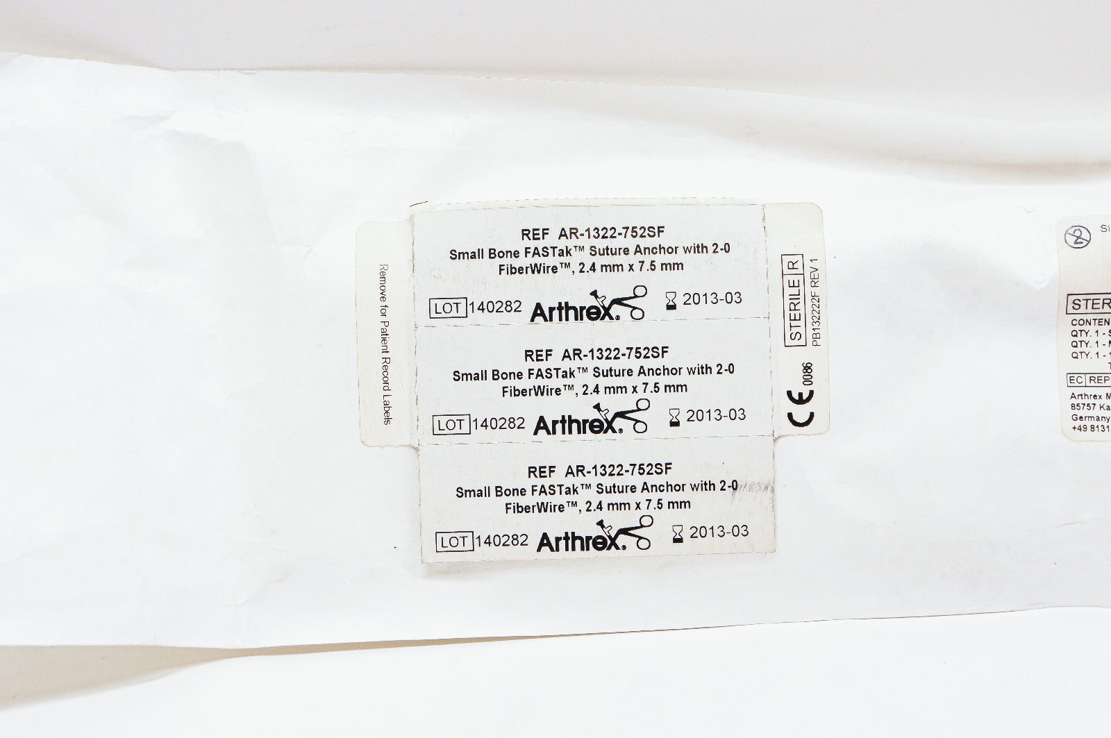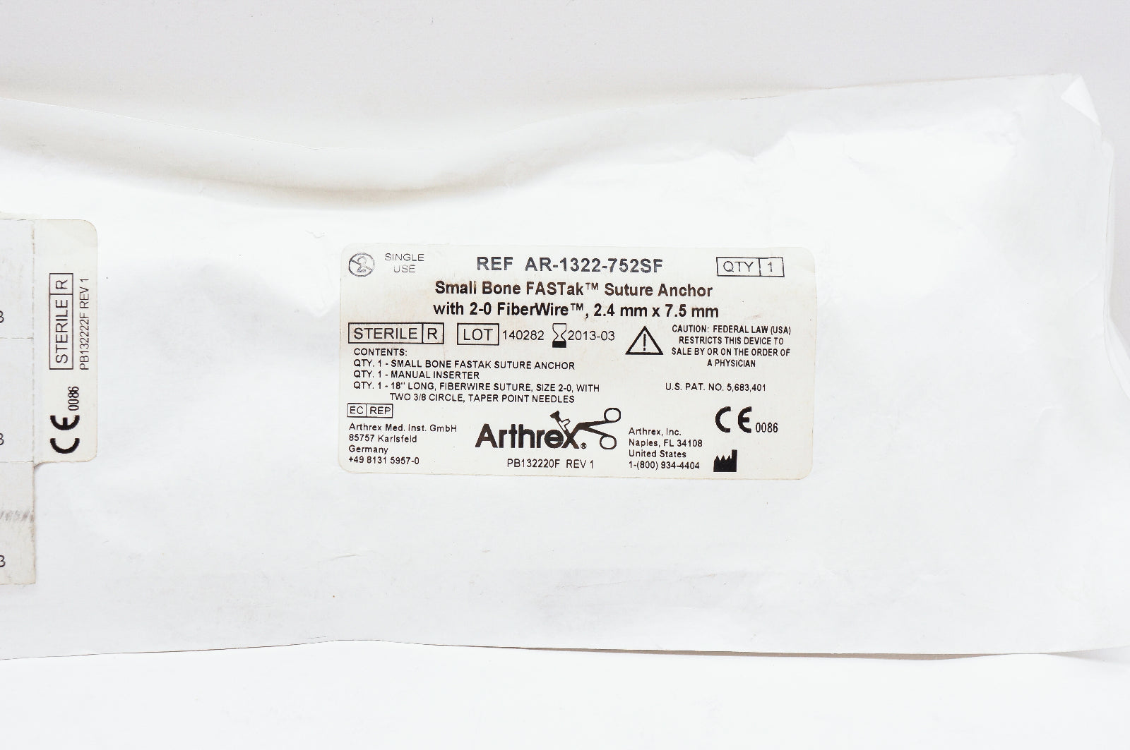 - Arthrex AR-1322-752SF Small Bone FASTak Suture Anchor, 2.4mm x 7.5mm (x)