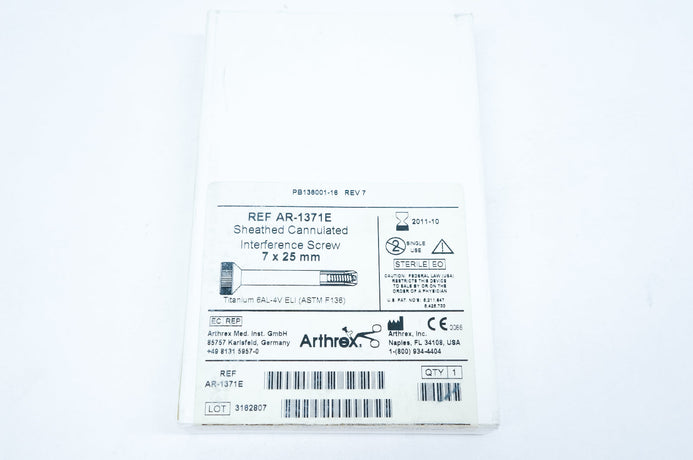 - Arthrex AR-1371E Sheathed Cannulated Interference Screw 7 x 25mm (x)