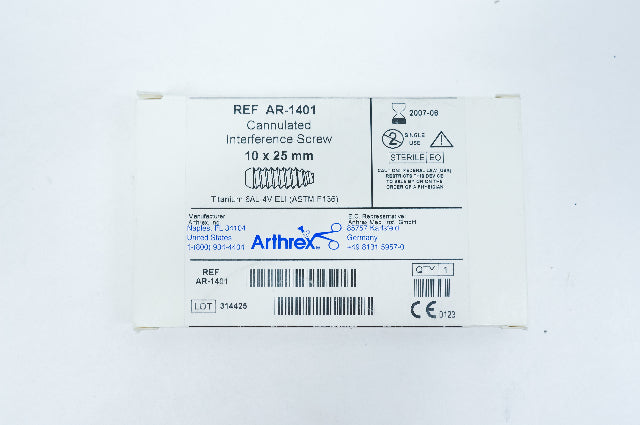 - Arthrex AR-1401 Cannulated Interference Screw 10 x 25mm (x)