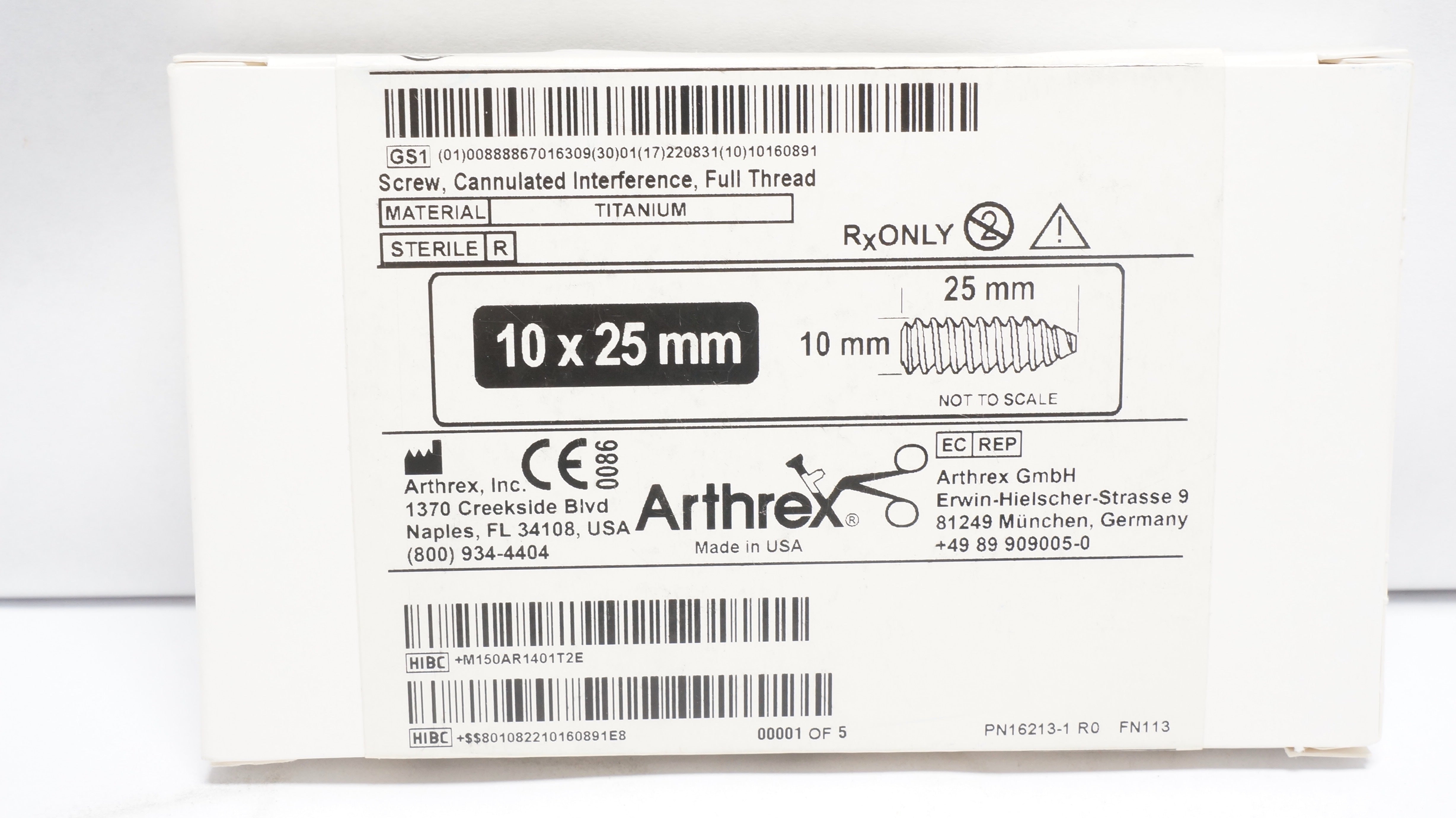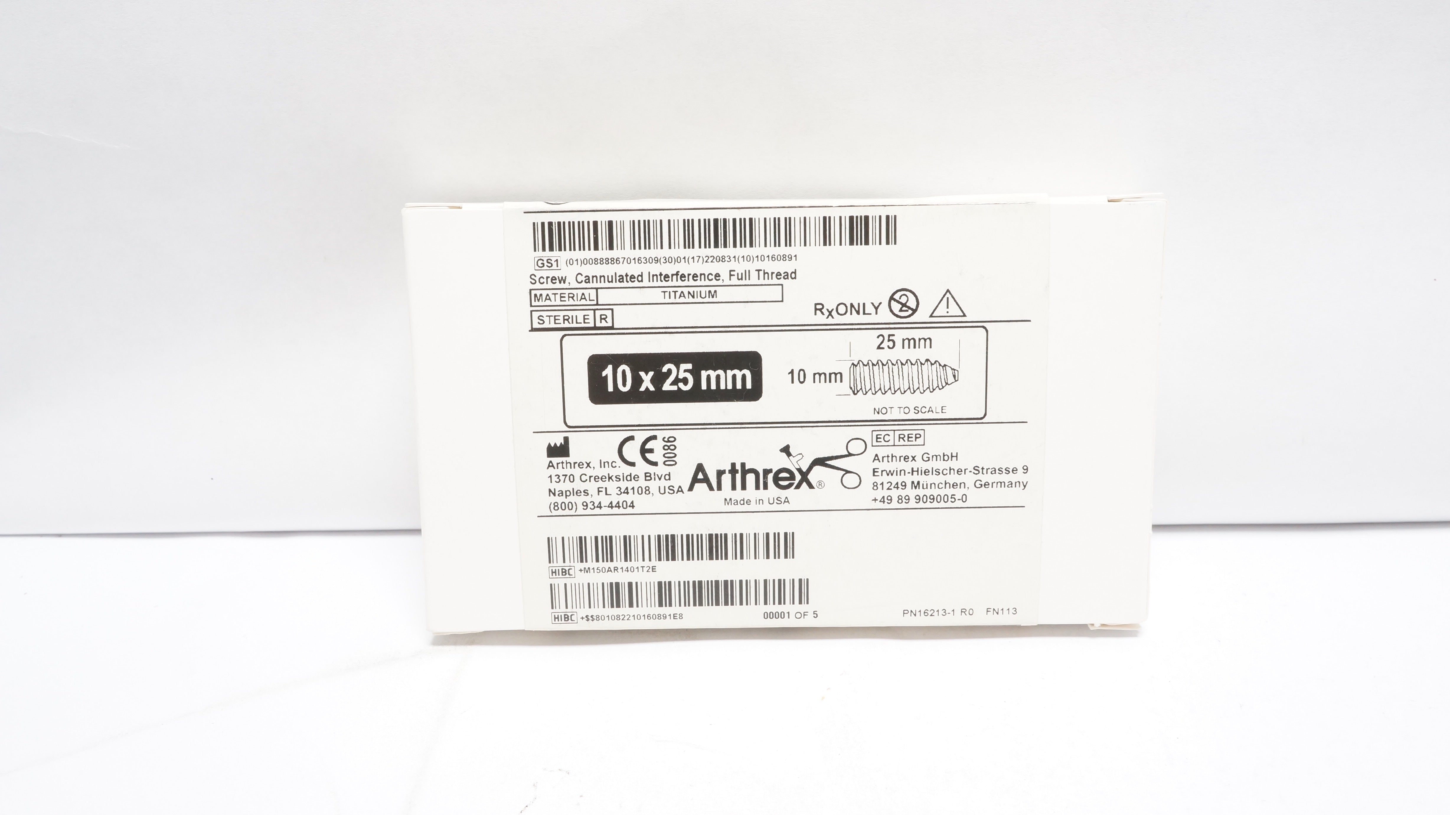 Arthrex AR-1401T Full Thread Cannulated Interference Screw 10 x 25mm (x)