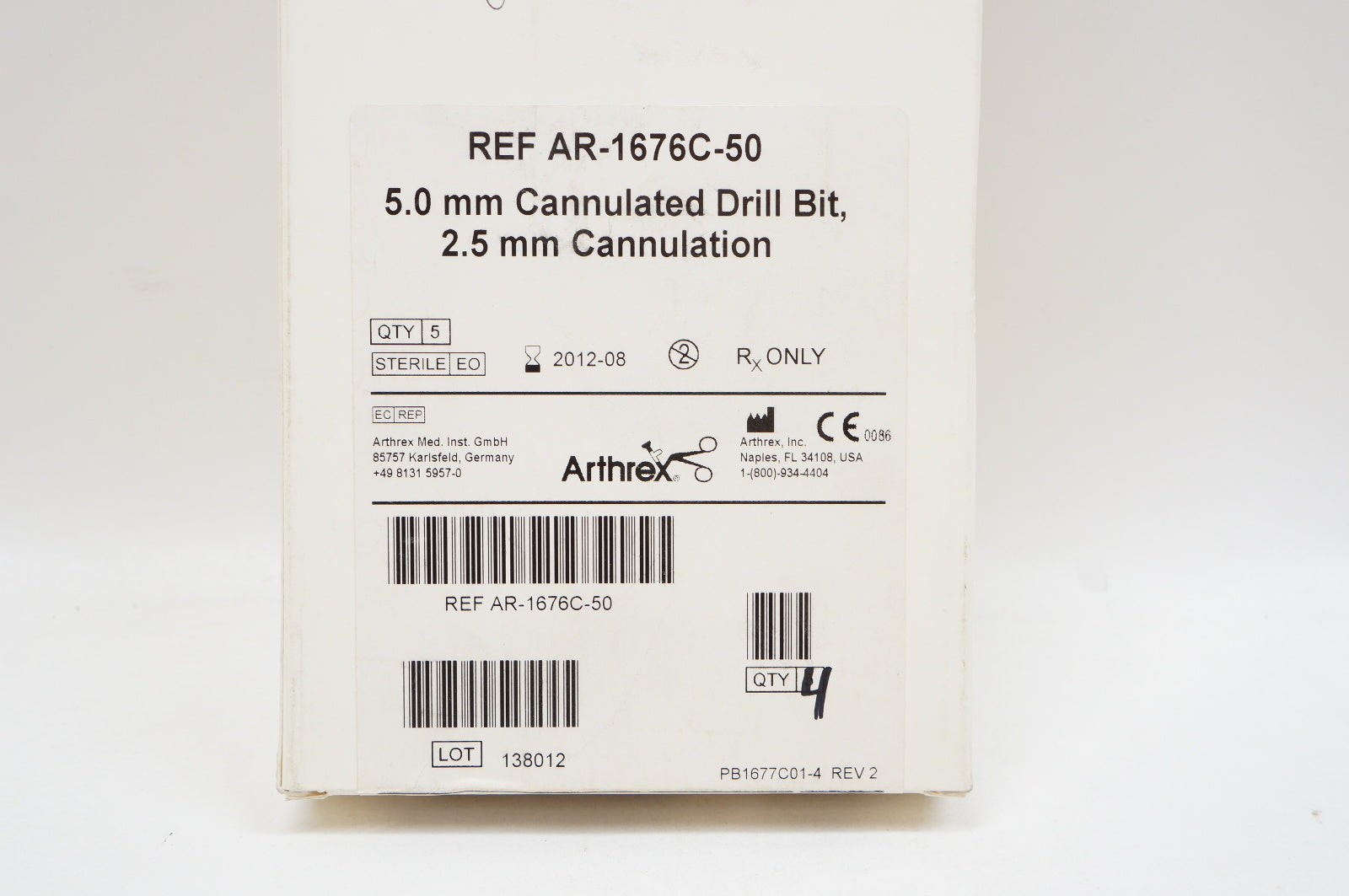 Arthrex AR-1676C-50 Cannulated Drill Bit 5.0mm, Cannulation 2.5mm