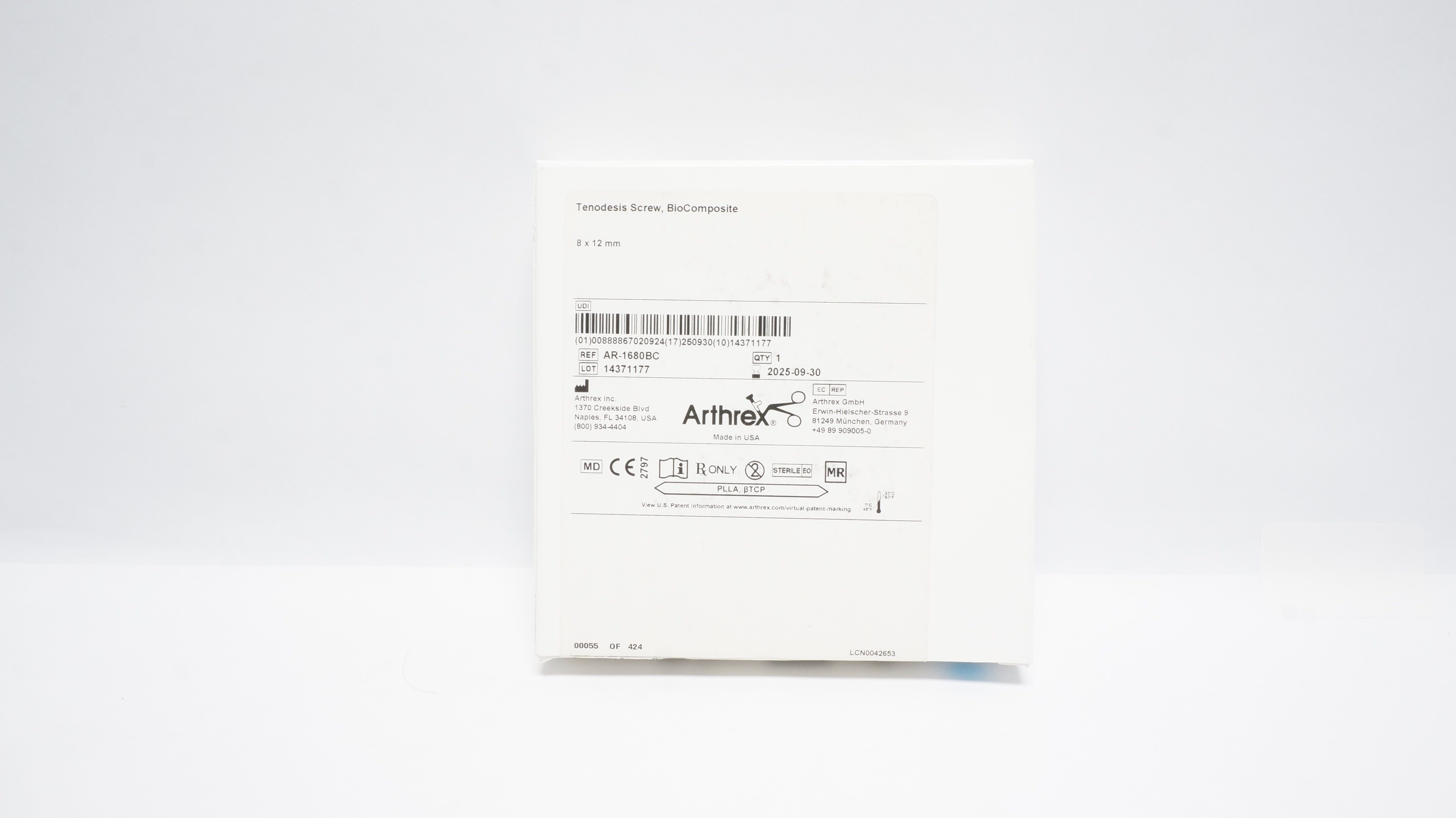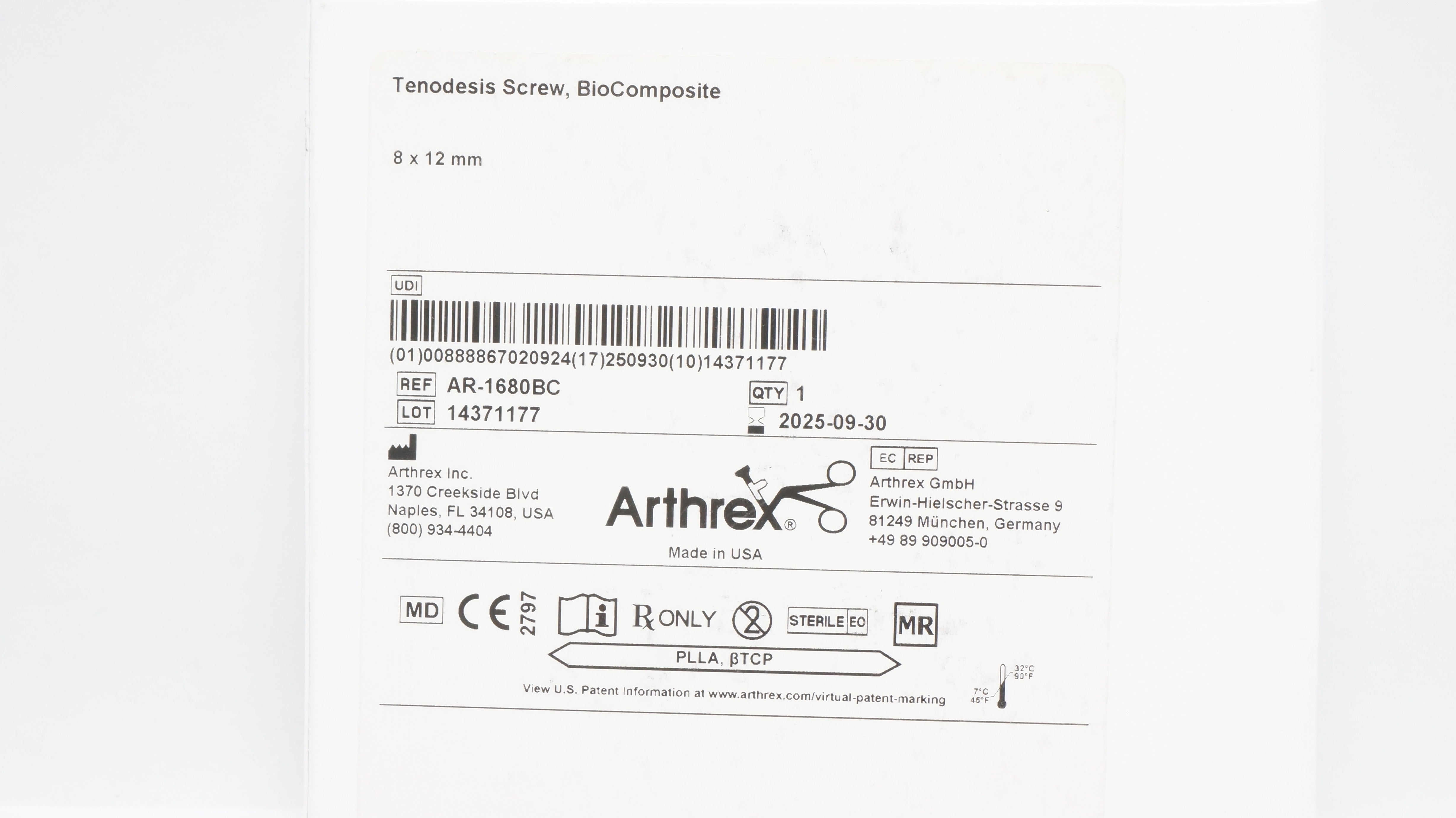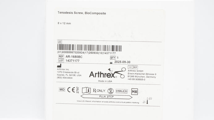 - Arthrex AR-1680BC BioComposite Tenodesis Screw 8 x 12mm (x)