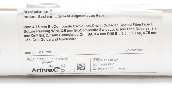 - Arthrex AR-1688-CP Peek-Optima Invibio Interna/Brace Implant System (x)