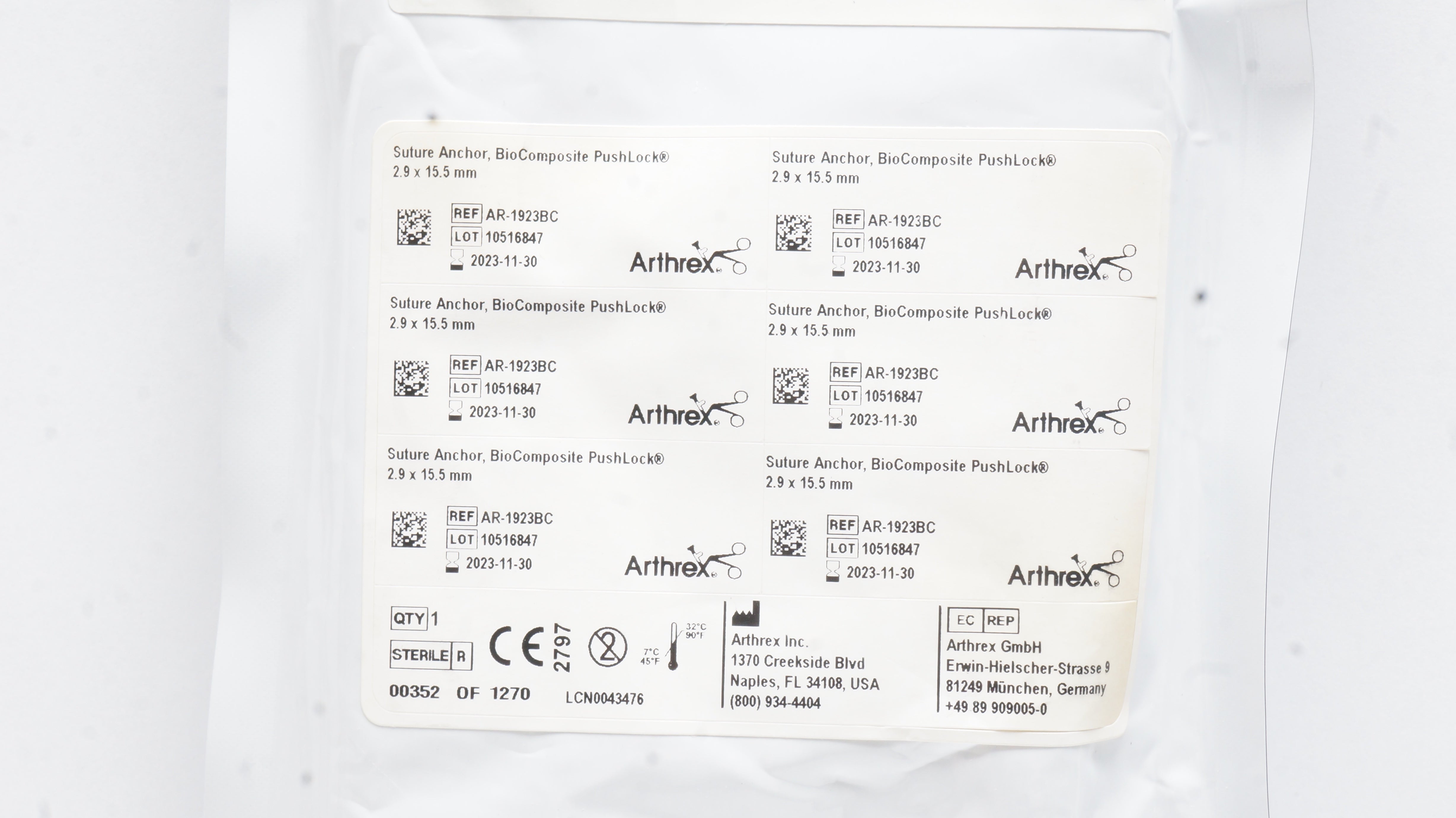 Arthrex AR-1923BC Suture Anchor, BioComposite PushLock 2.9mm x 15.5mm