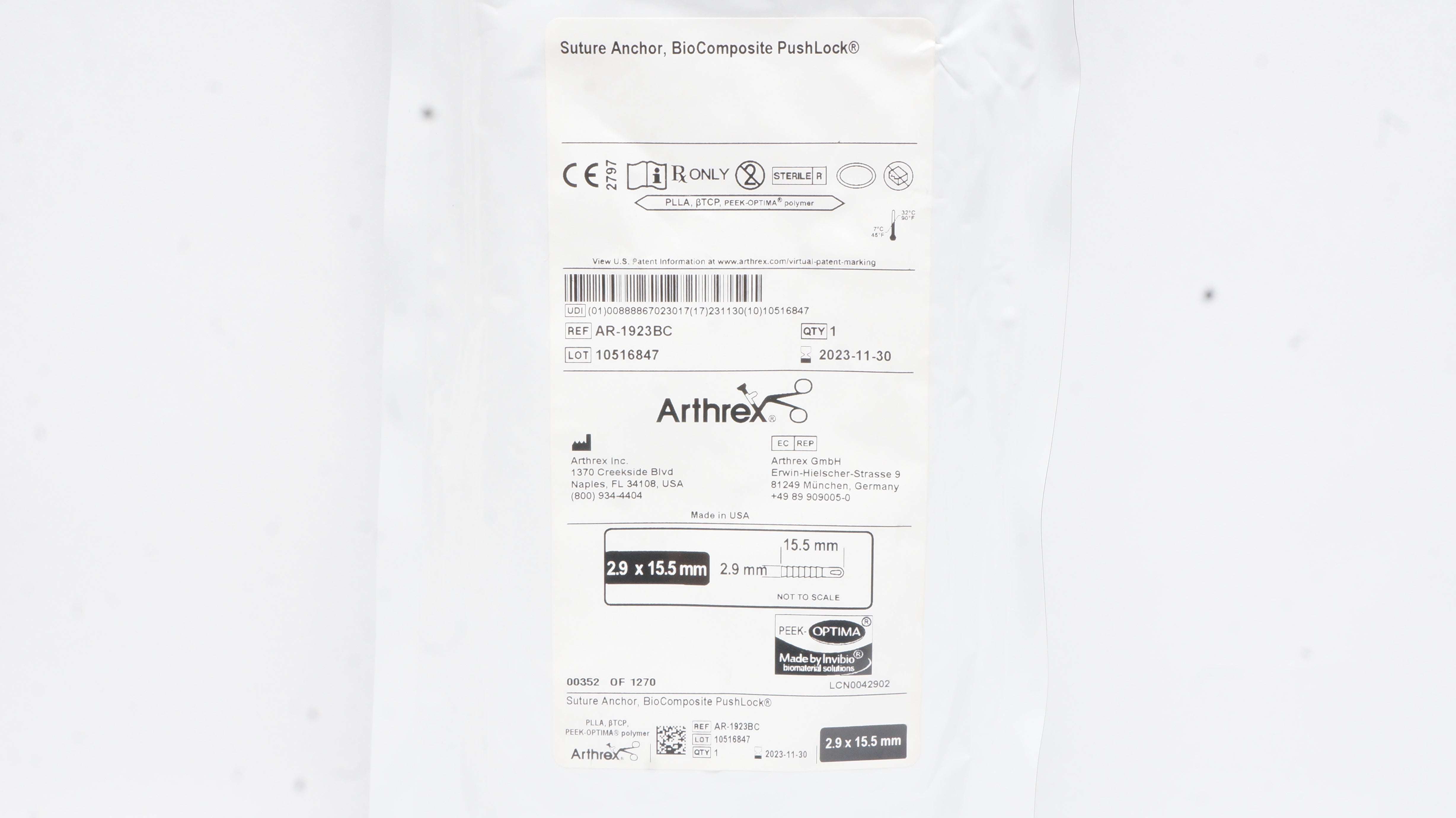 Arthrex AR-1923BC Stre Anchor, BioComposite PushLock 2.9mm x 15.5mm (x)