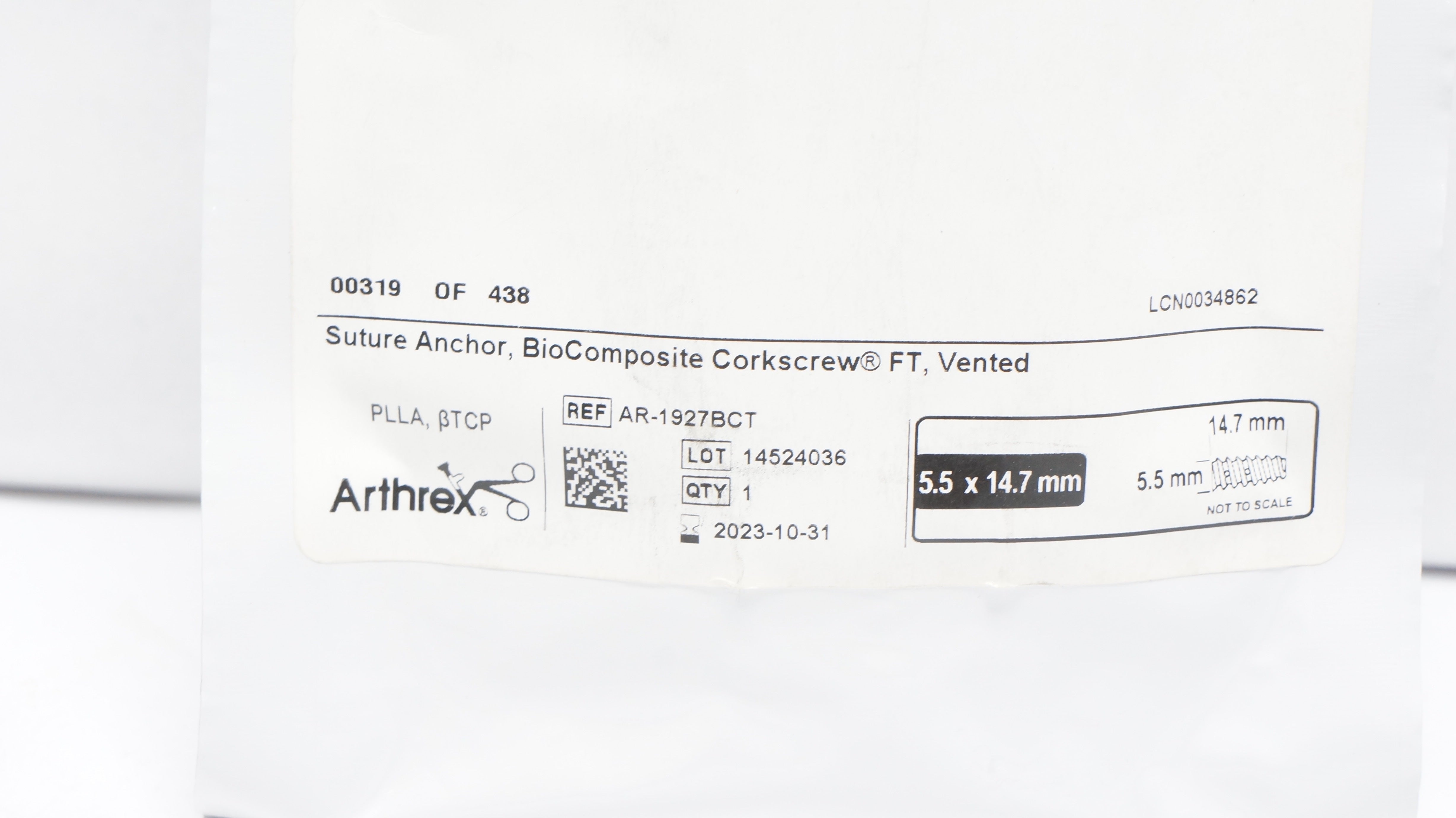 Arthrex AR-1927BCT Stre Anchor Corkscrew FT Vented Stre Tape 5.5inch x 14,7mm(x)