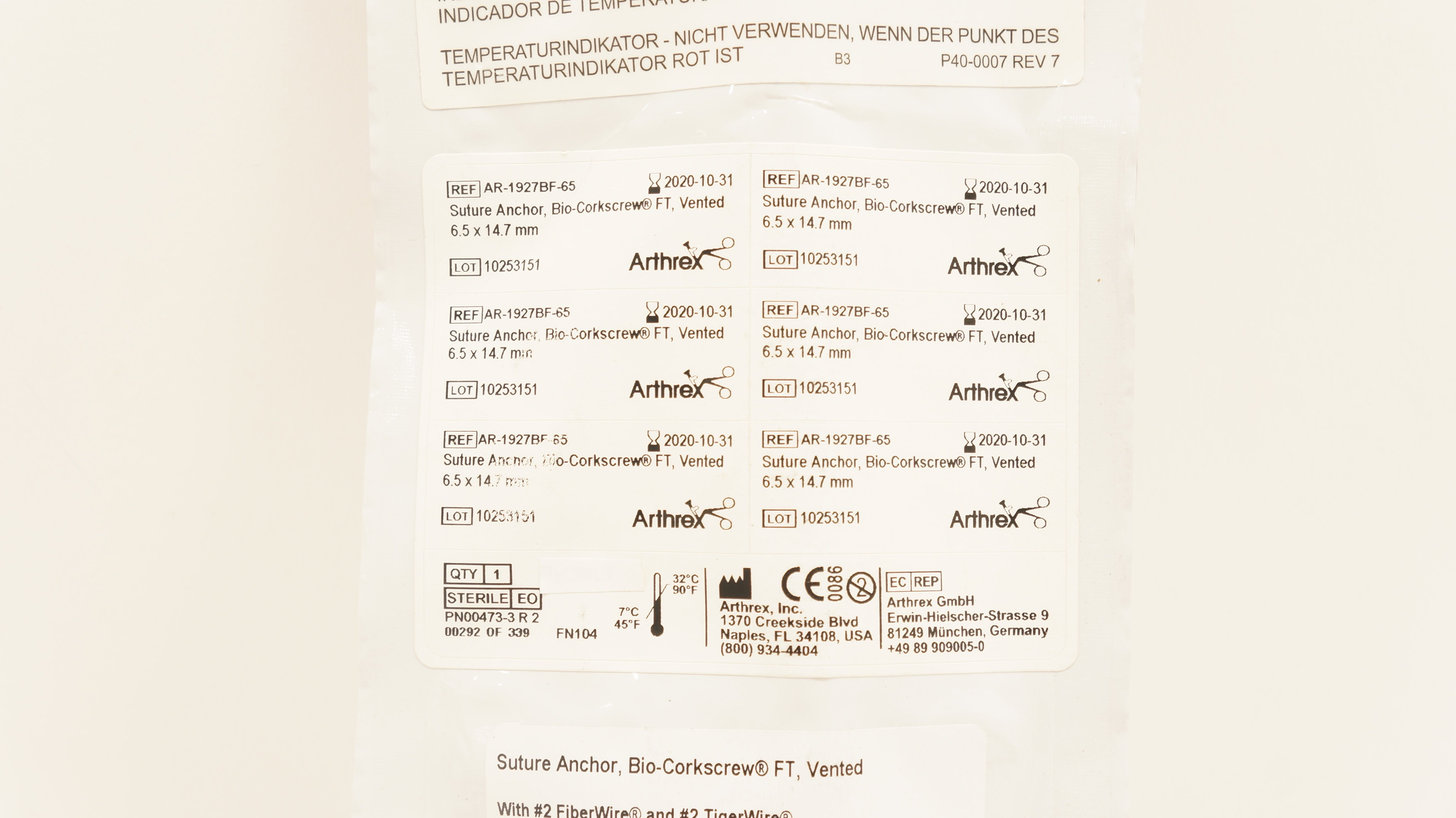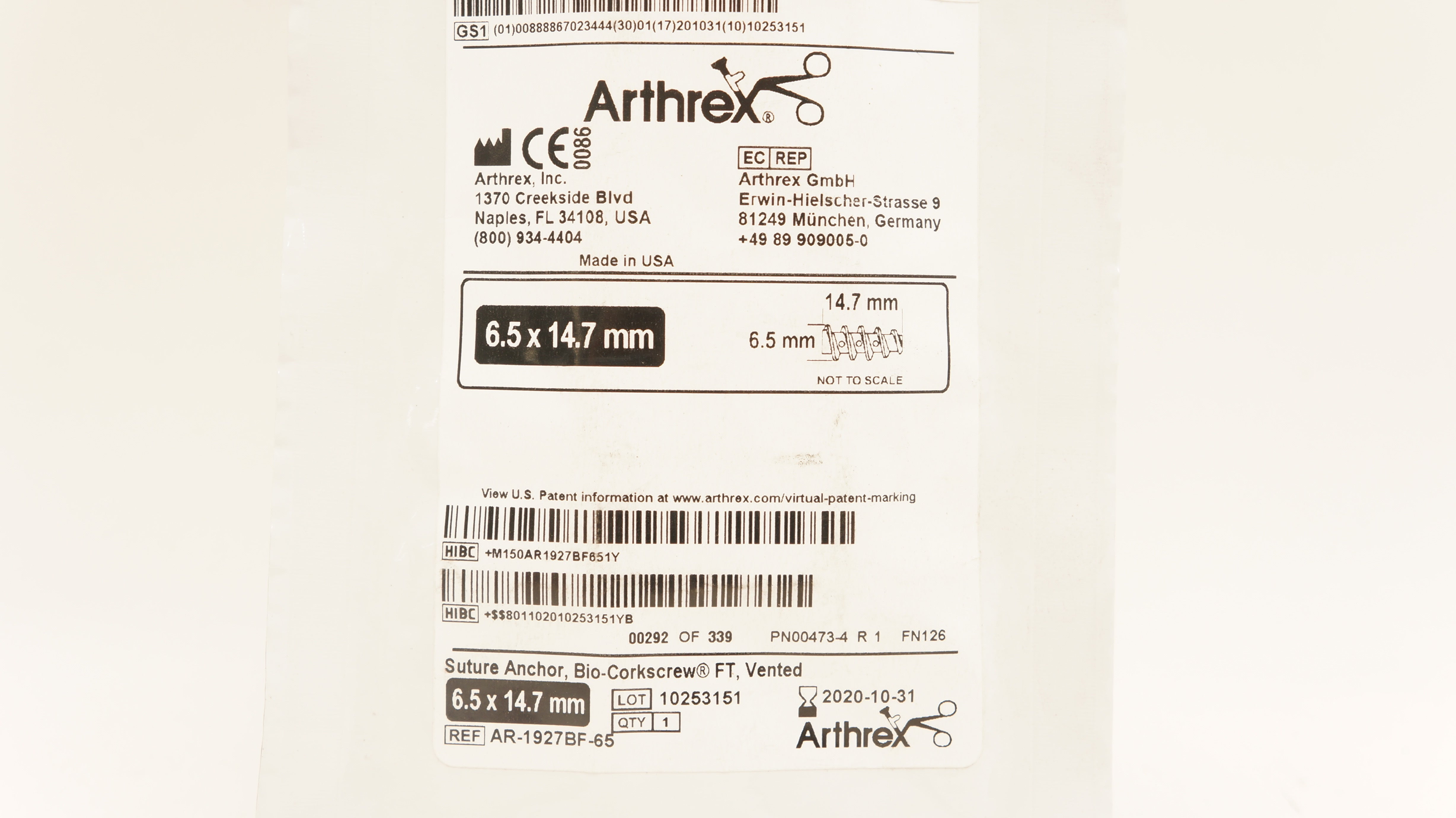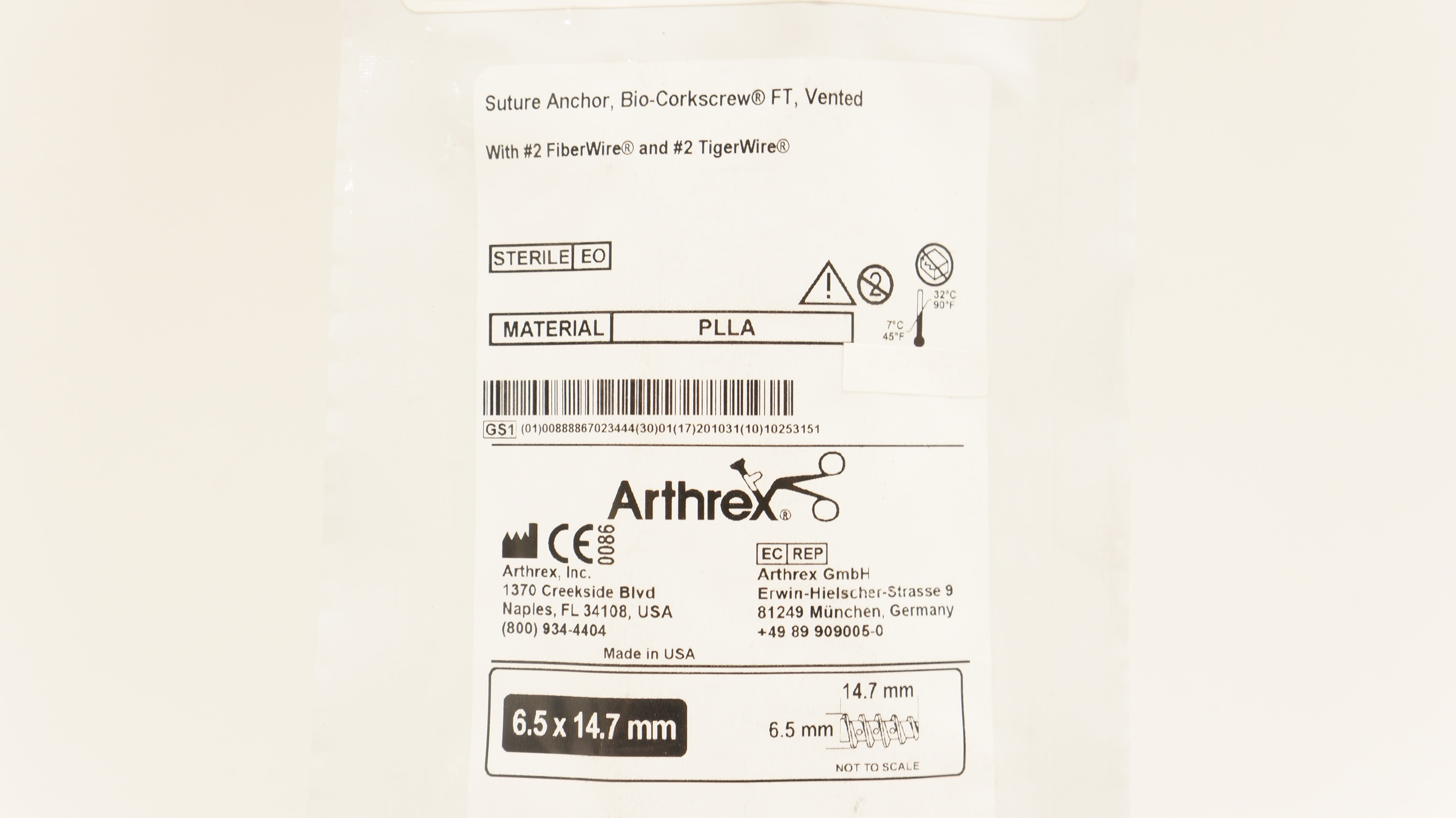 - Arthrex AR-1927BF-65 Suture Anchor Bio-Corkscrew 6.5 x 14.7mm (x)