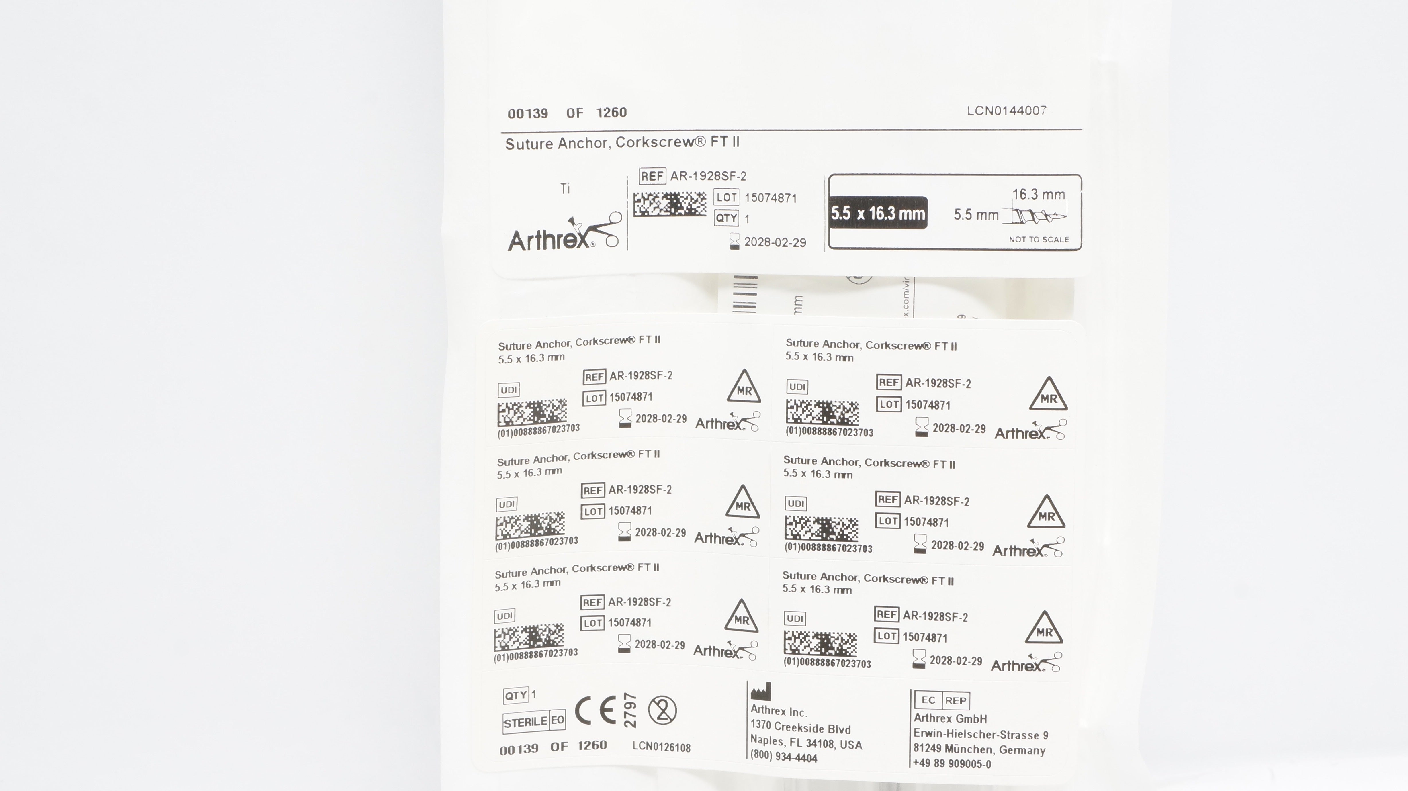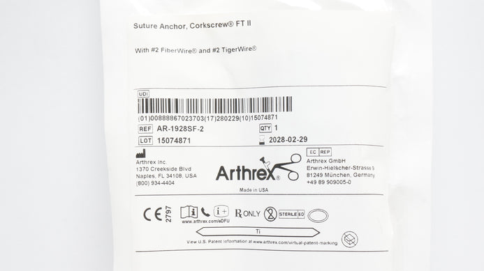 - Arthrex AR-1928SF-2 Stre Anchor Corkscrew FT II 5.5 x 16.3mm