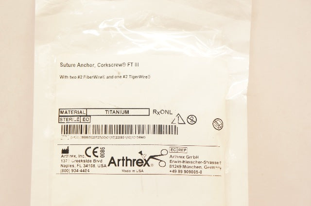 - Arthrex AR-1928SF-3 Stre Anchor Corkscrew FT III w/#2 Fiber Wire 5.5 x 16.3mm(x)