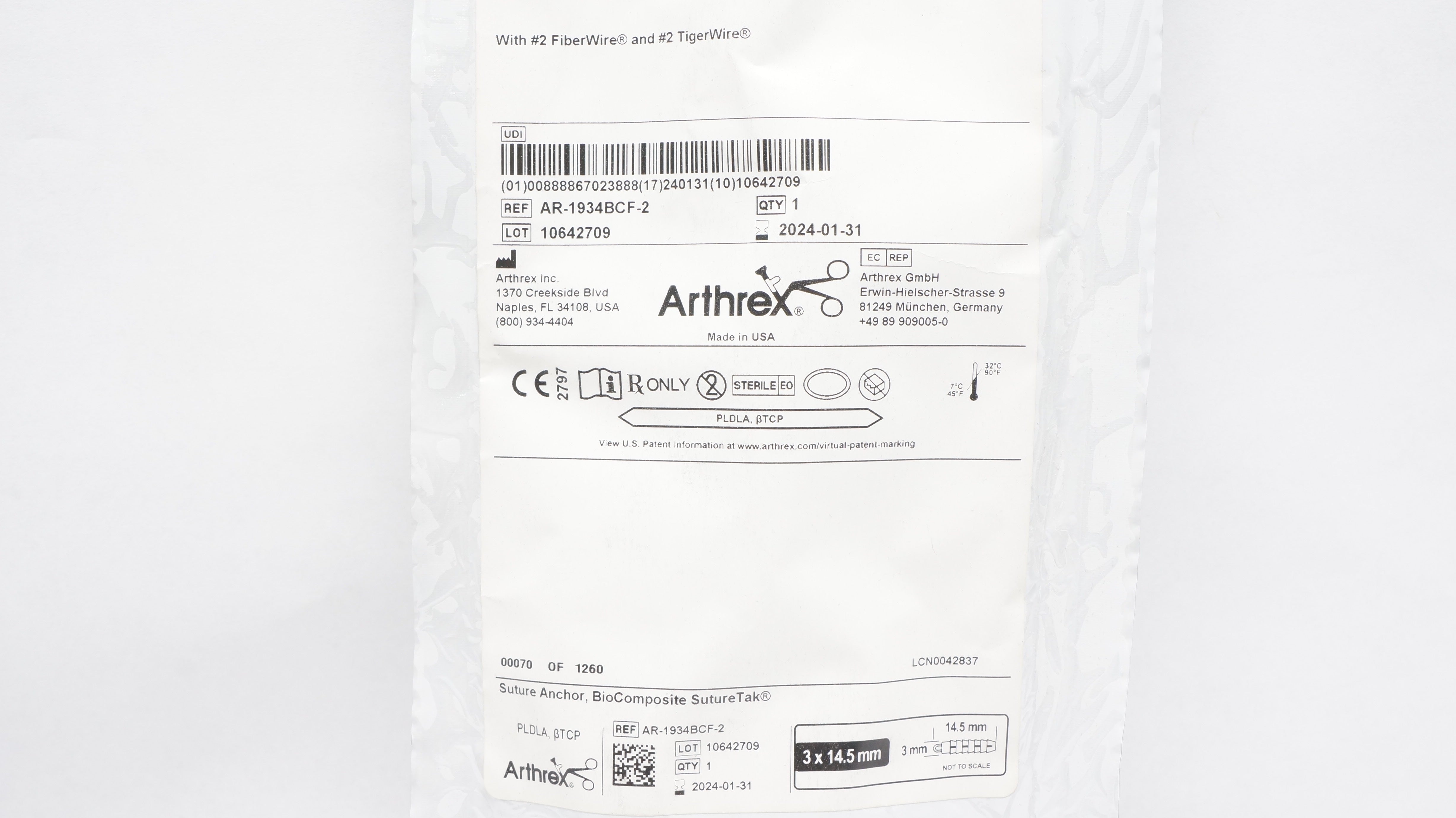 Arthrex AR-1934BCF-24 Suture Anchor BioComposite Suture Tak 2.4 x 12 mm (x)