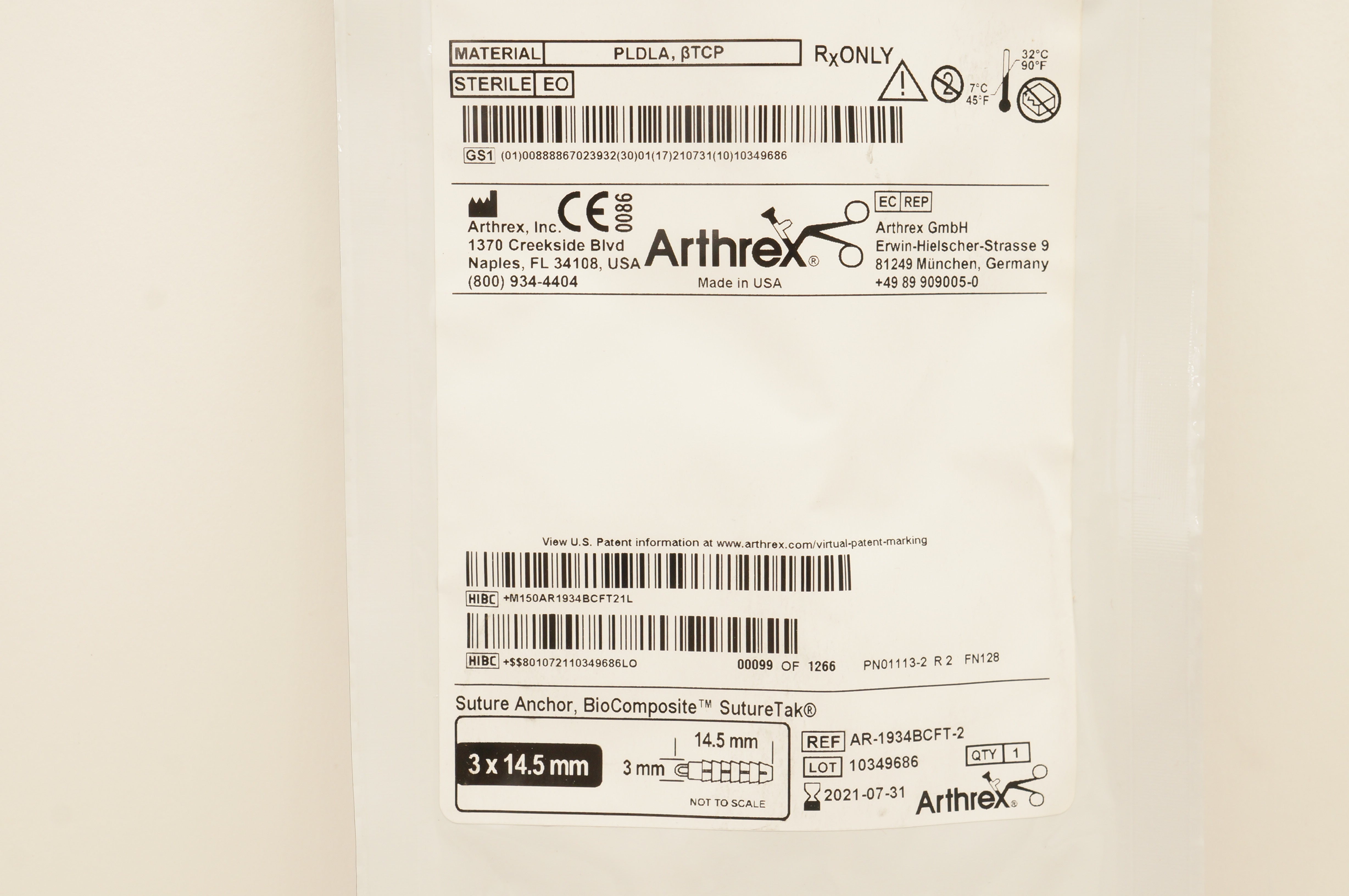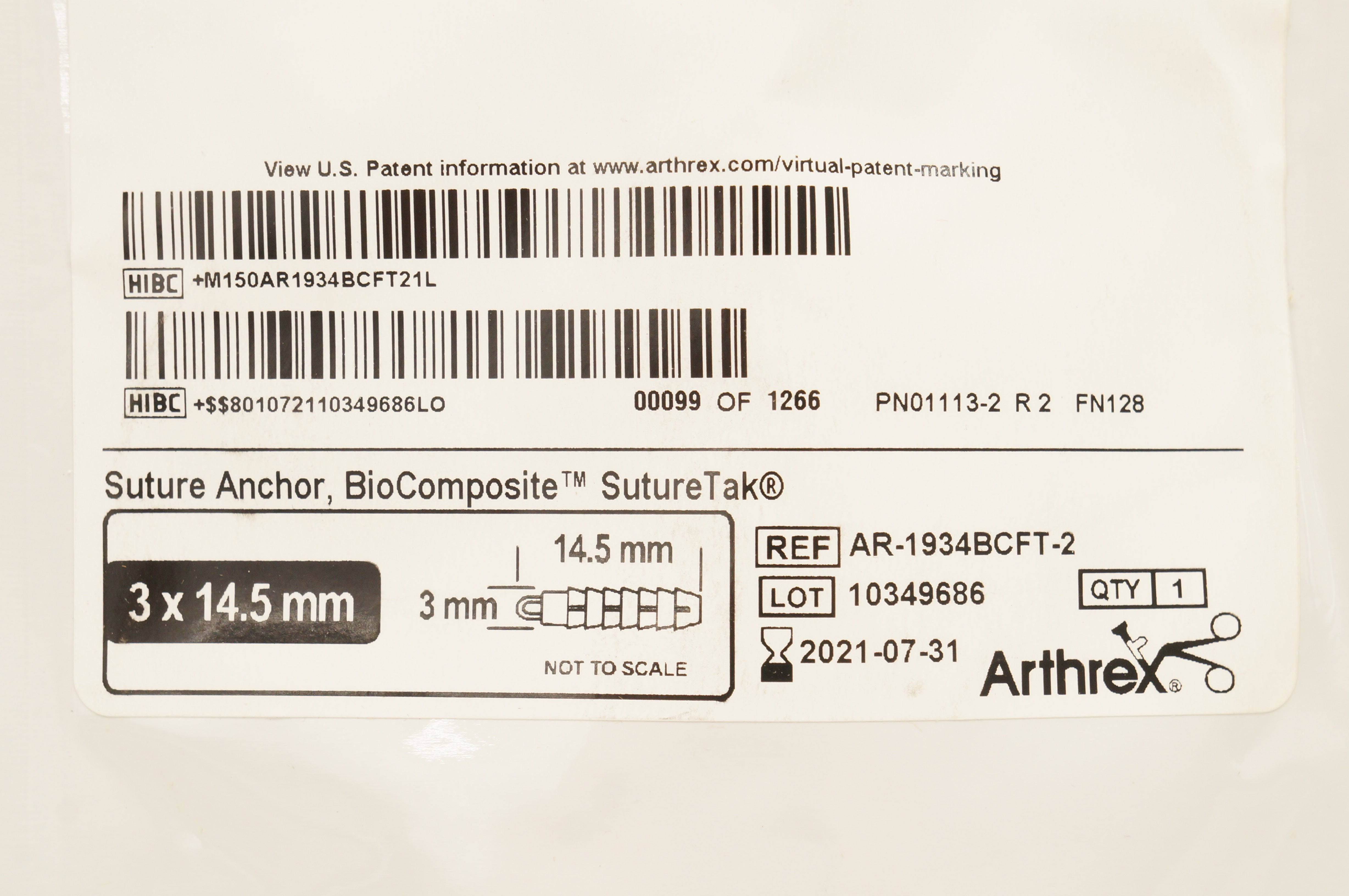 Arthrex AR-1934BCFT-2 Stre Anchor, BioComposite SutureTak 3mm x 14.5mm (x)