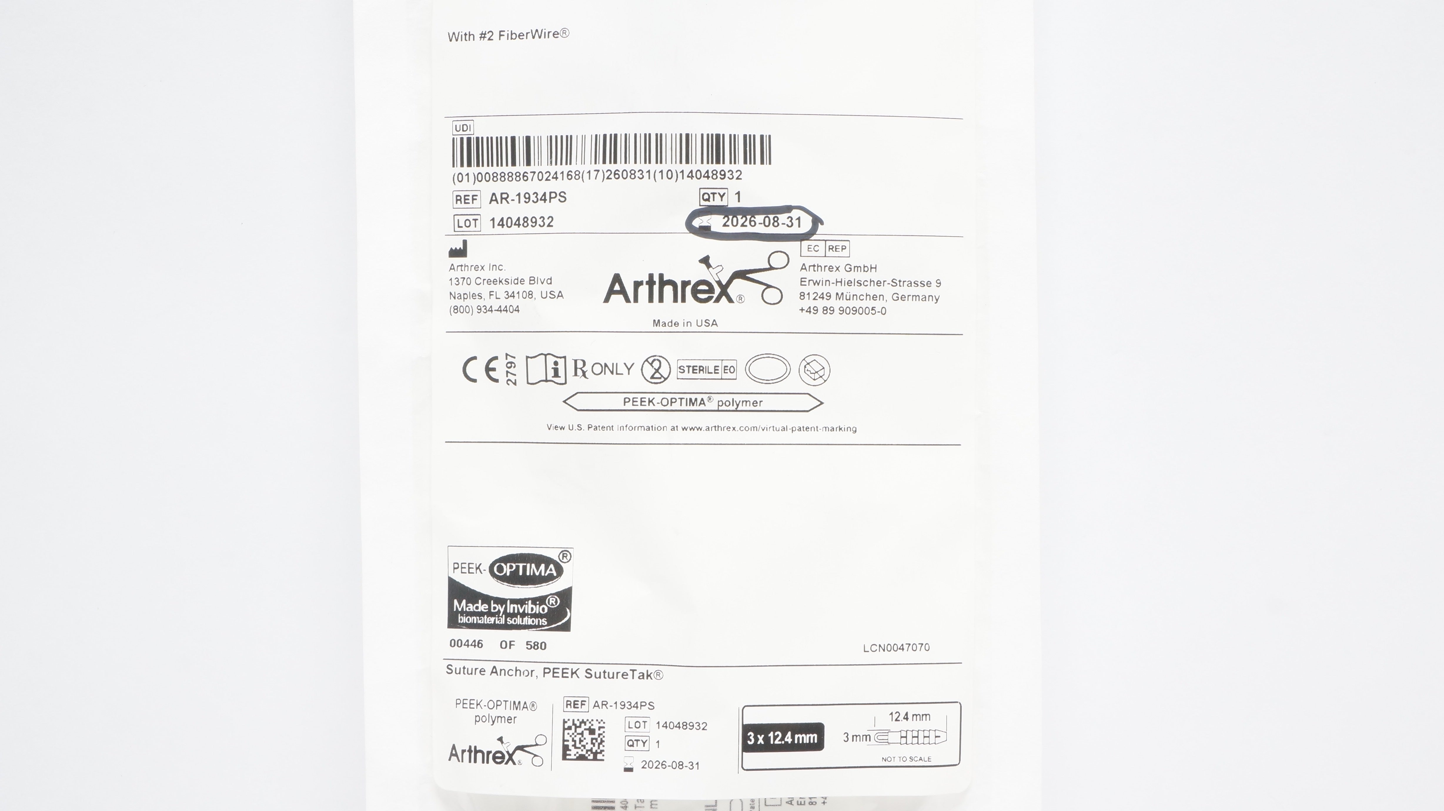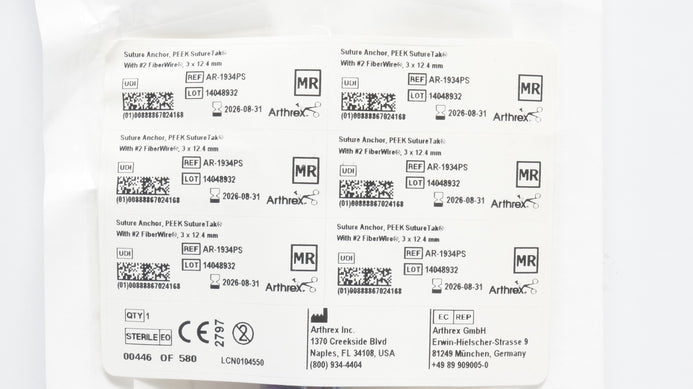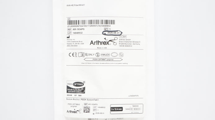- Arthrex AR-1934PS-2 Stre Anchor, PEEK SutureTak w/#2 FiberWire & #2 TigerWire