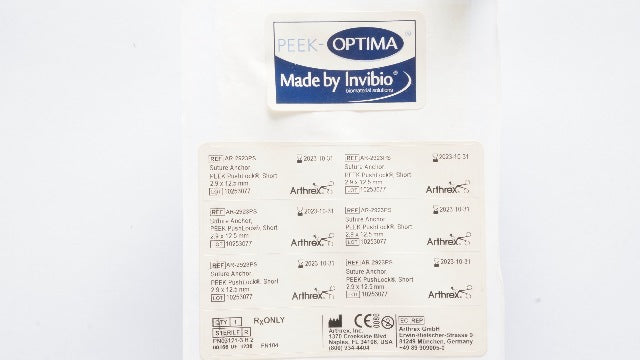 Arthrex AR-2923PS Peek-Optima Invibio Suture Anchor, Peek PushLock, Short 2.9 x 12.5mm