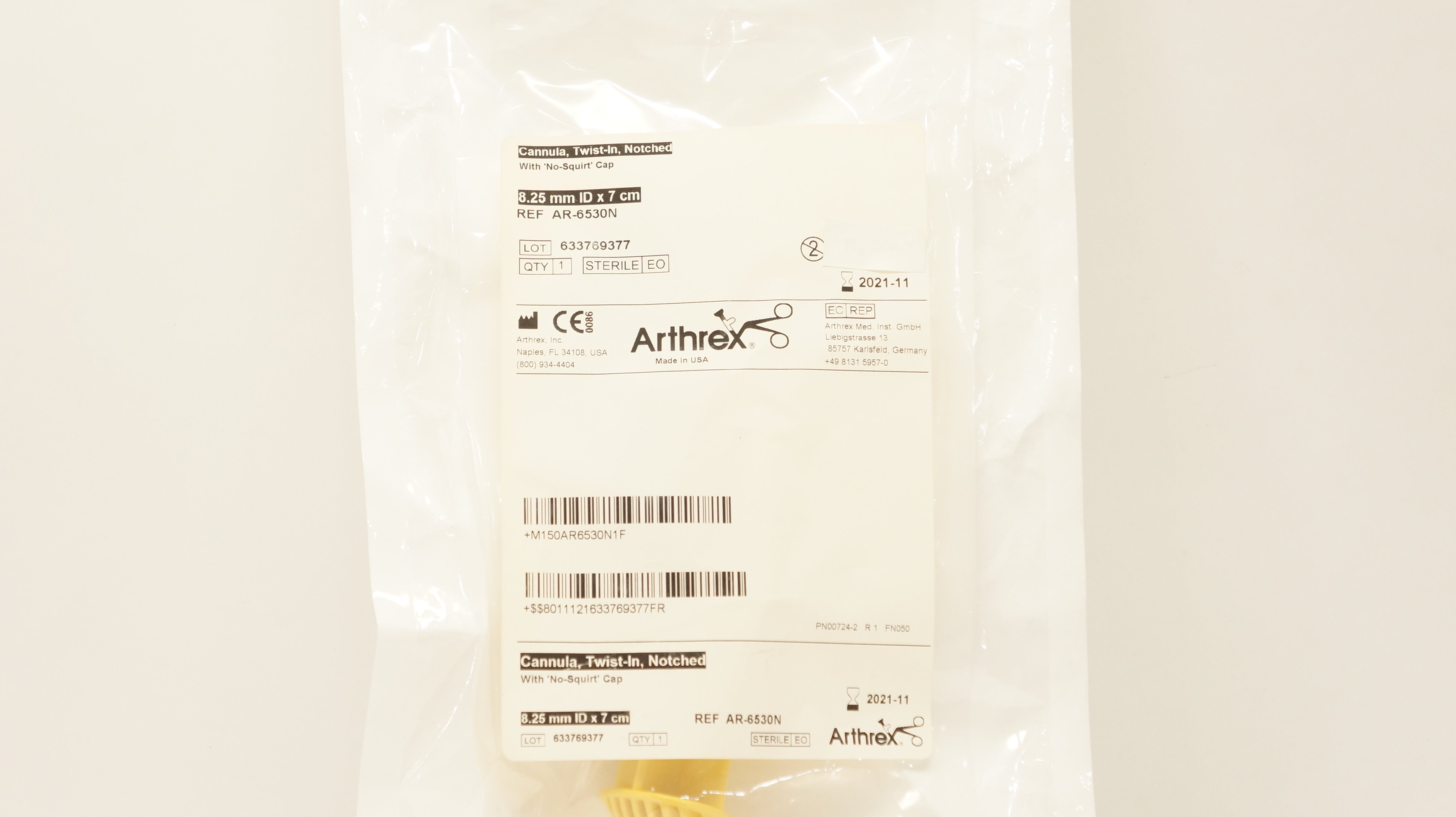 Arthrex AR-6530N Cannula, Twist-In Notched with No-Squirt Cap 8.25mm ID x 7cm(x)