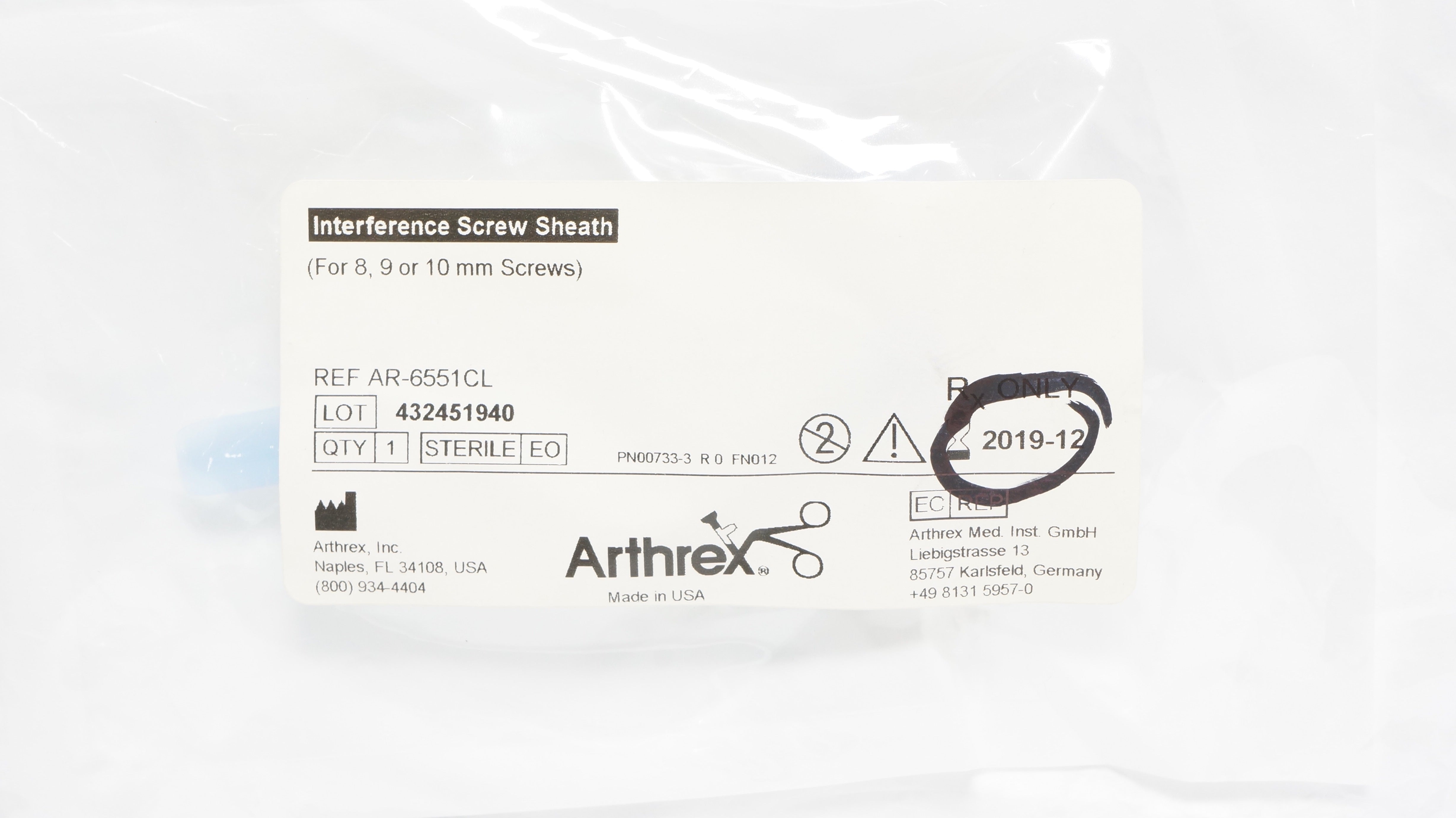 - Arthrex AR-6551CL Interference Screw Sheath (For 8,9 or 10mm Screws) (x)