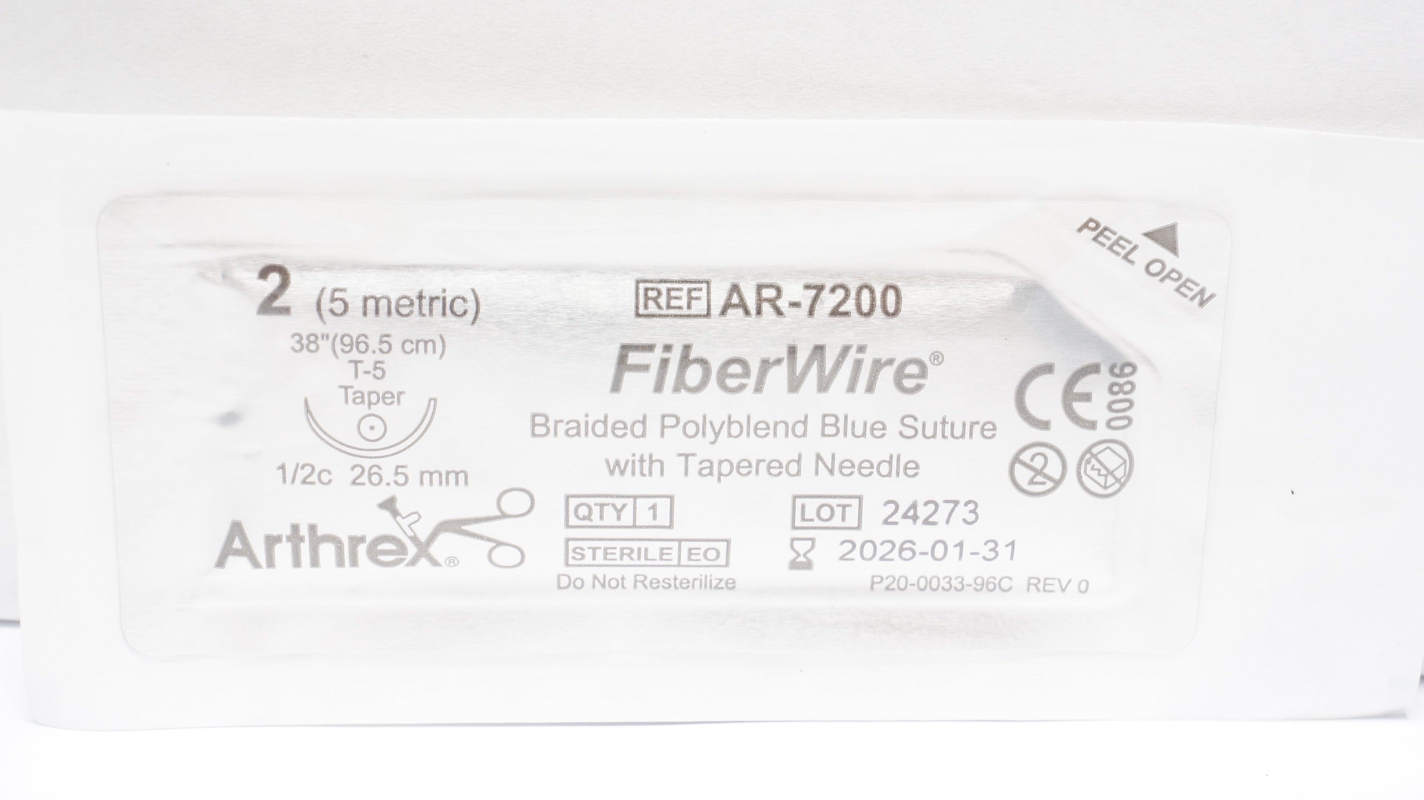 Arthrex AR-7200 2 FiberWire Braided Blue Stre T-5 Taper 1/2c 26.5mm, 38inch