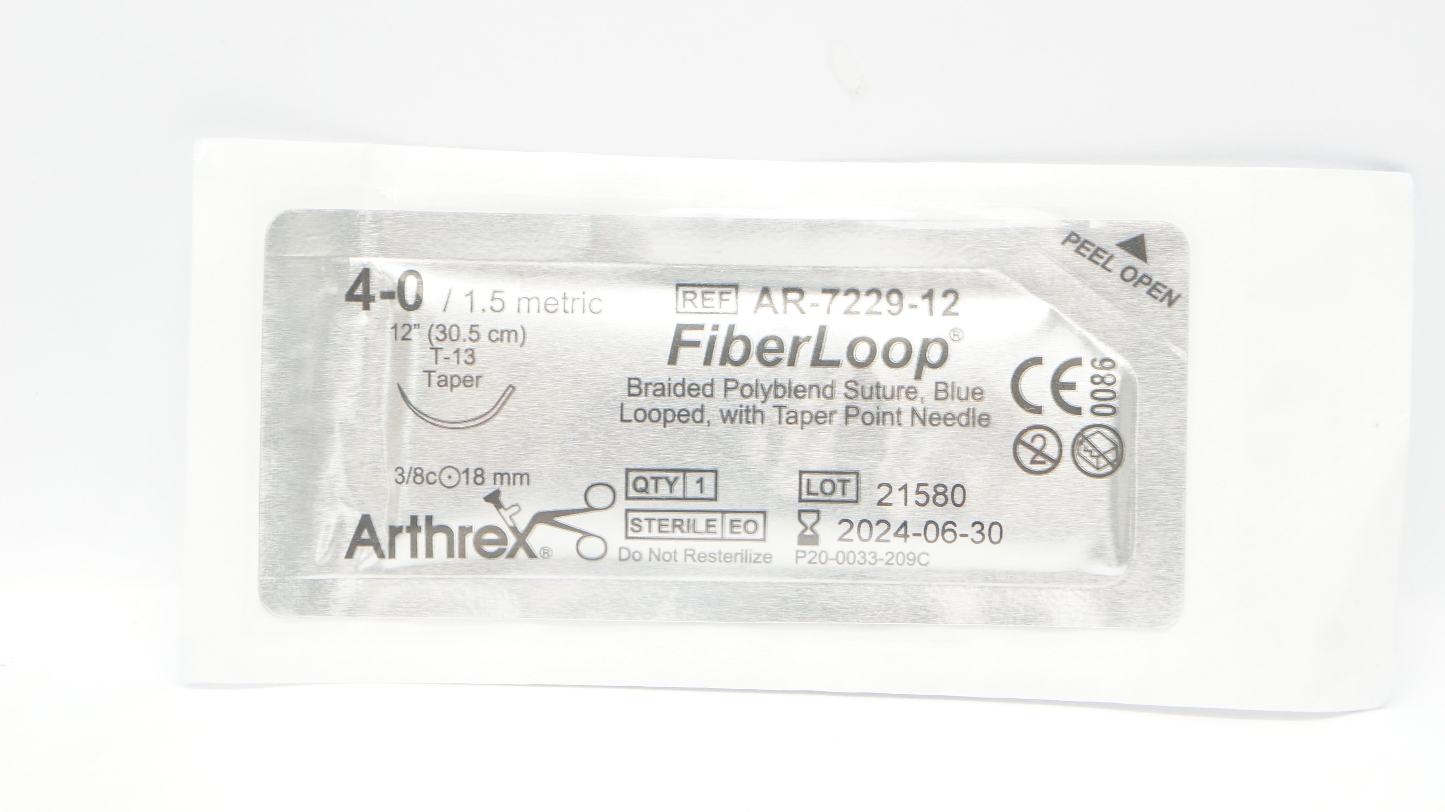 - Arthrex AR-7229-12 Braided Polyblend Blue Looped Stre. 4-0, Taper Ndle. T-13 (x)
