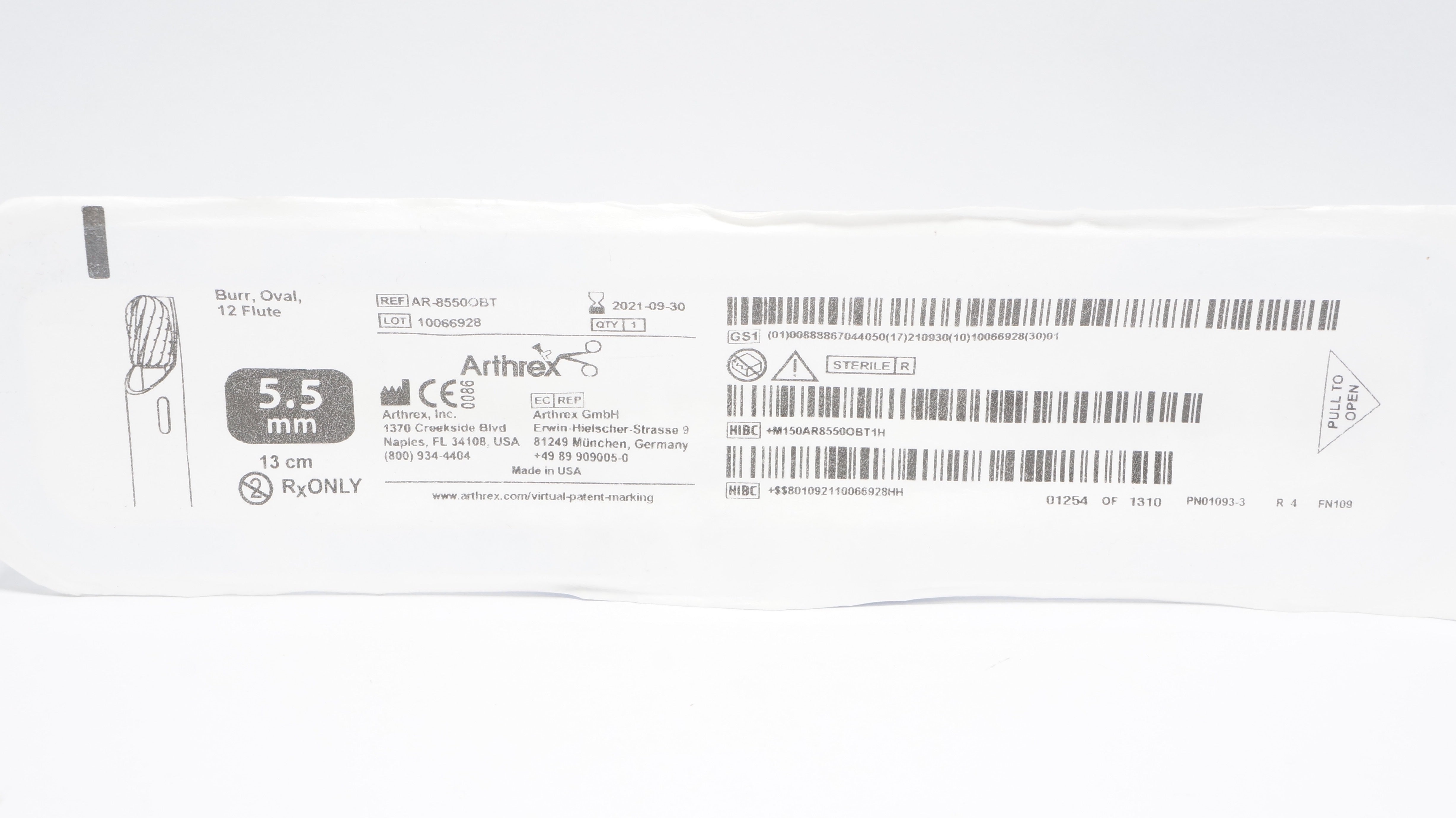 - Arthrex AR-8550OBT Burr, Oval, 12 Flute 5.5mm x 13cm (x)