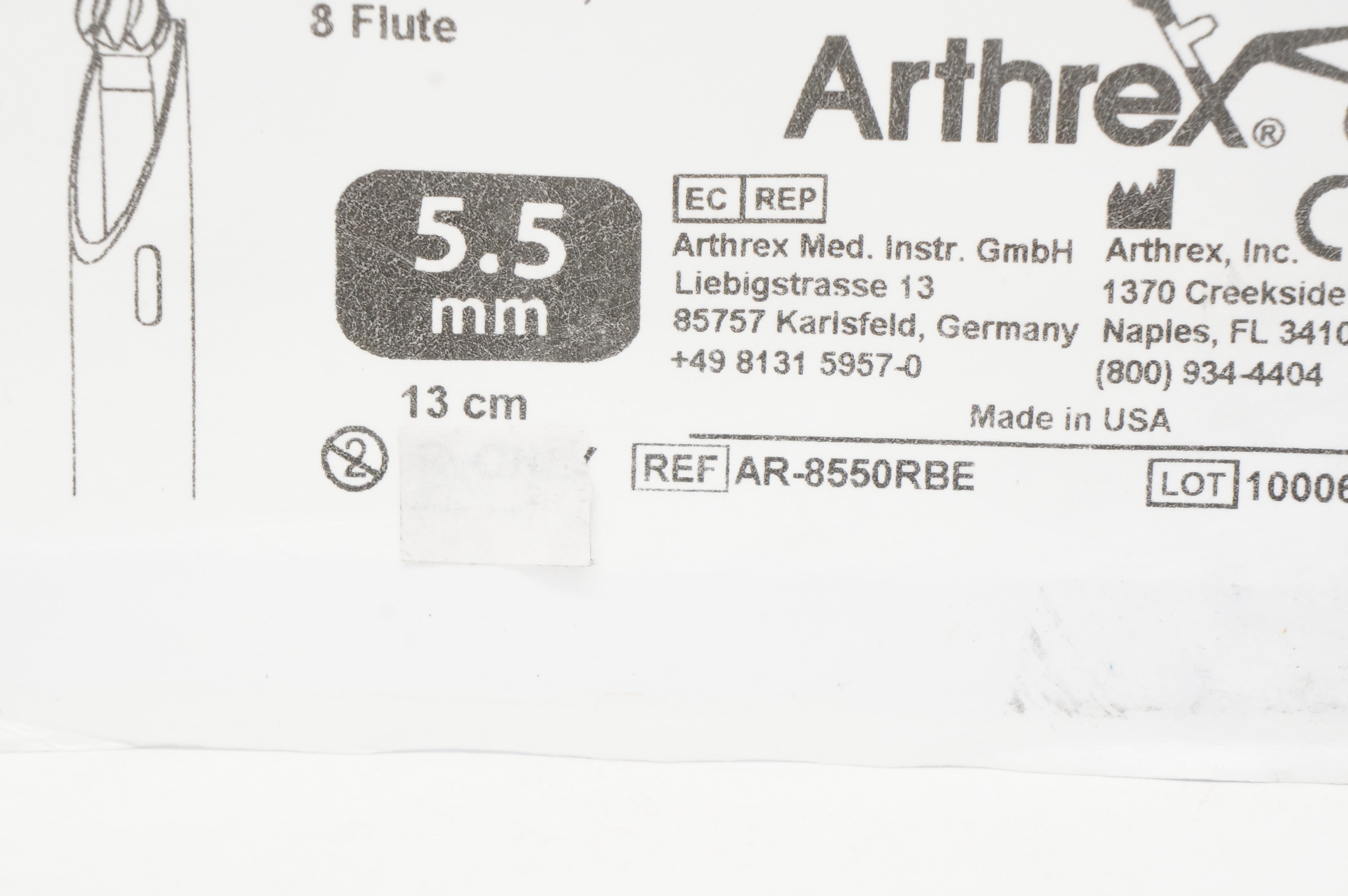 - Arthrex AR-8550RBE Burr Round 8 Flute 5.5mm x 13cm (x)