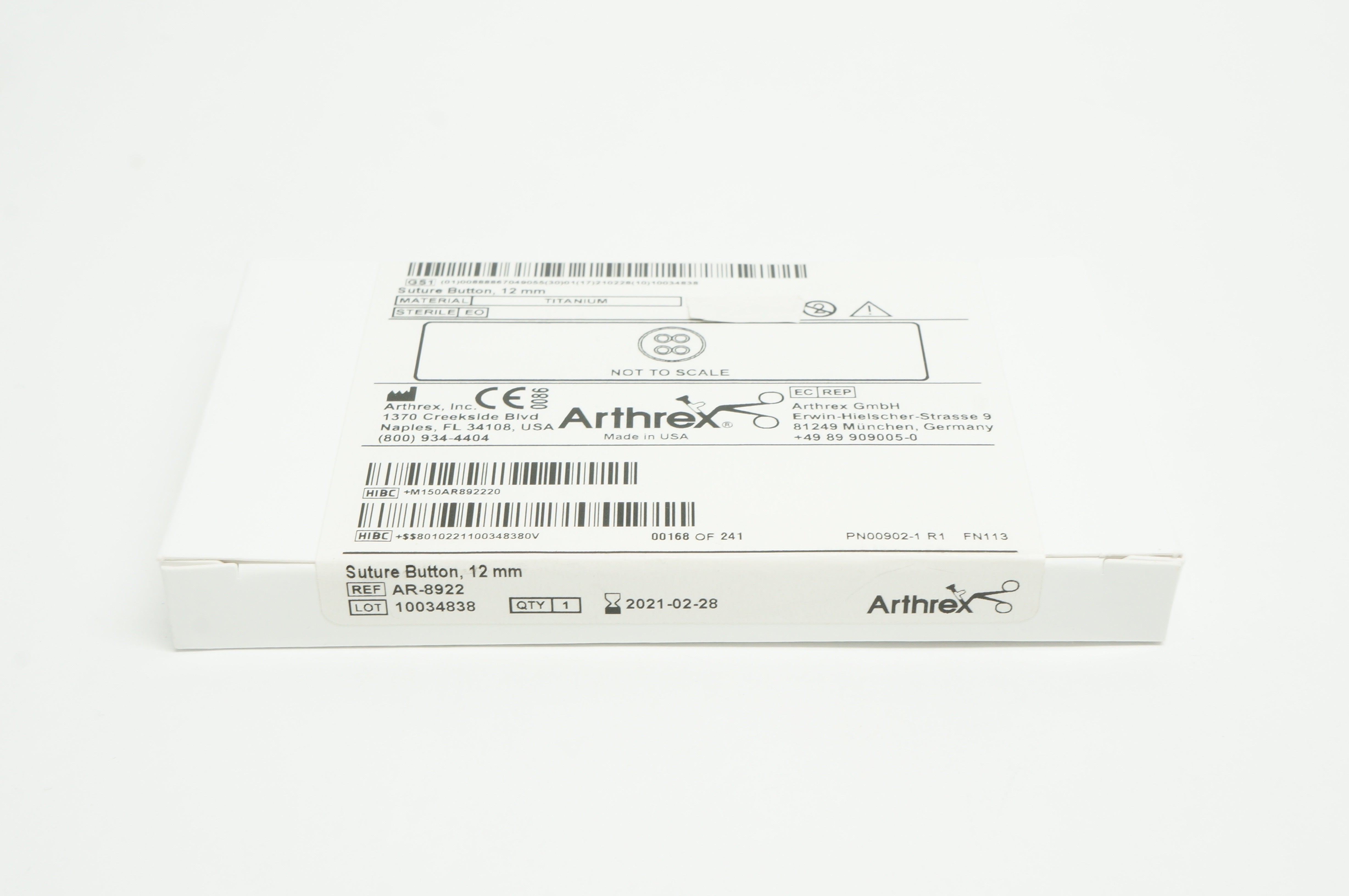 - Arthrex AR-8922 Titanium Suture Button, 12mm