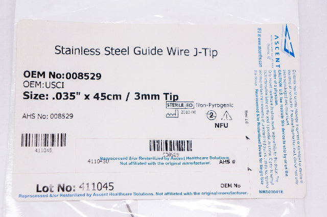 Ascent 008529 Stainless Steel Guide Wire J-Tip 0.035inch x 45cm / 3mm Tip