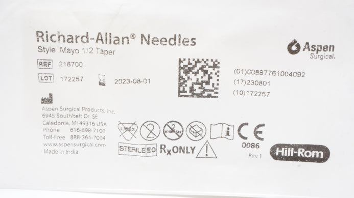 - Aspen Surgical 216700 Richard-Allan 1/2 Circle Taper Ndles (x)