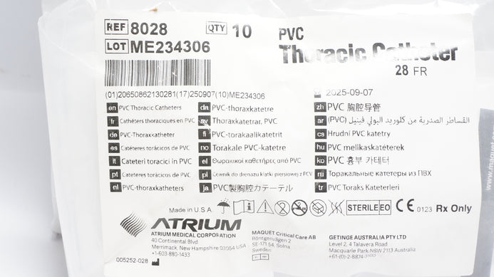 - Atrium 8012 PVC Thoracic Cath. 12FR (x) - Pack of 10