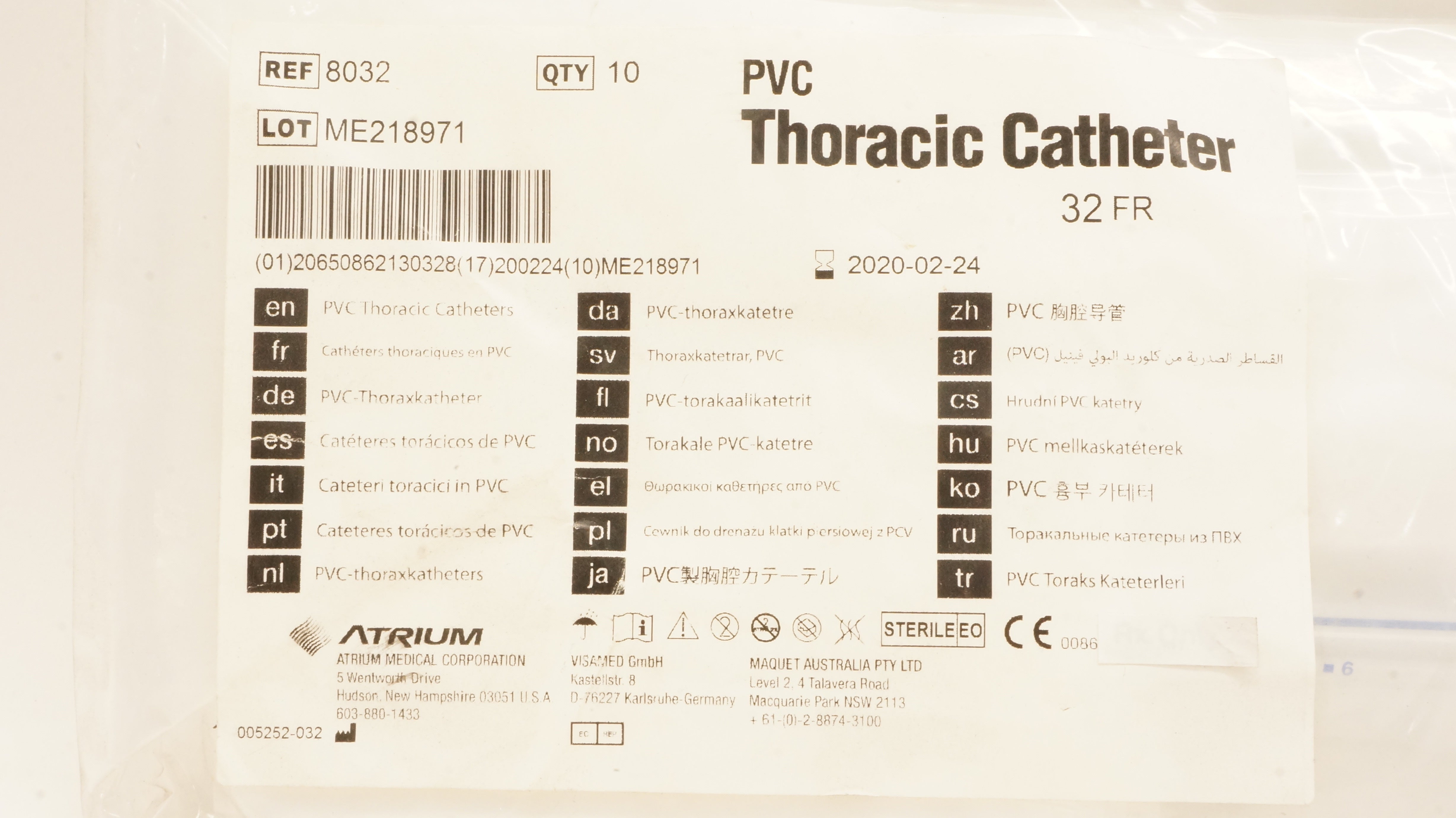 - Atrium 8032 PVC Thoracic Cath. 32 Fr (x) - Pack of 10